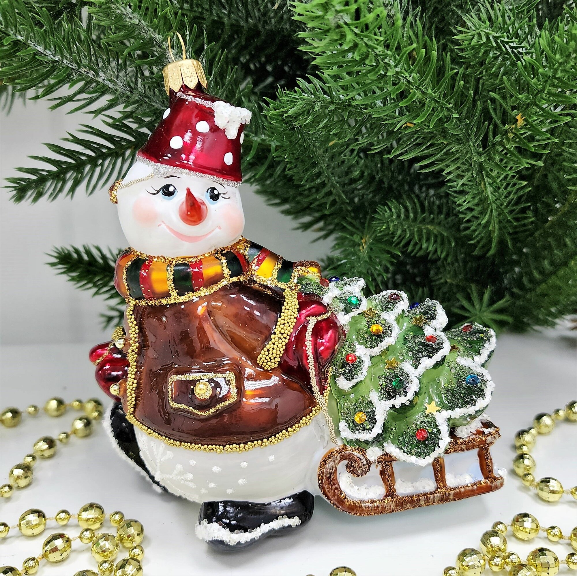 Отзывы на Irena-Co елочная игрушка, стекло Снеговик тянет саночки (12х11,5х6см)
