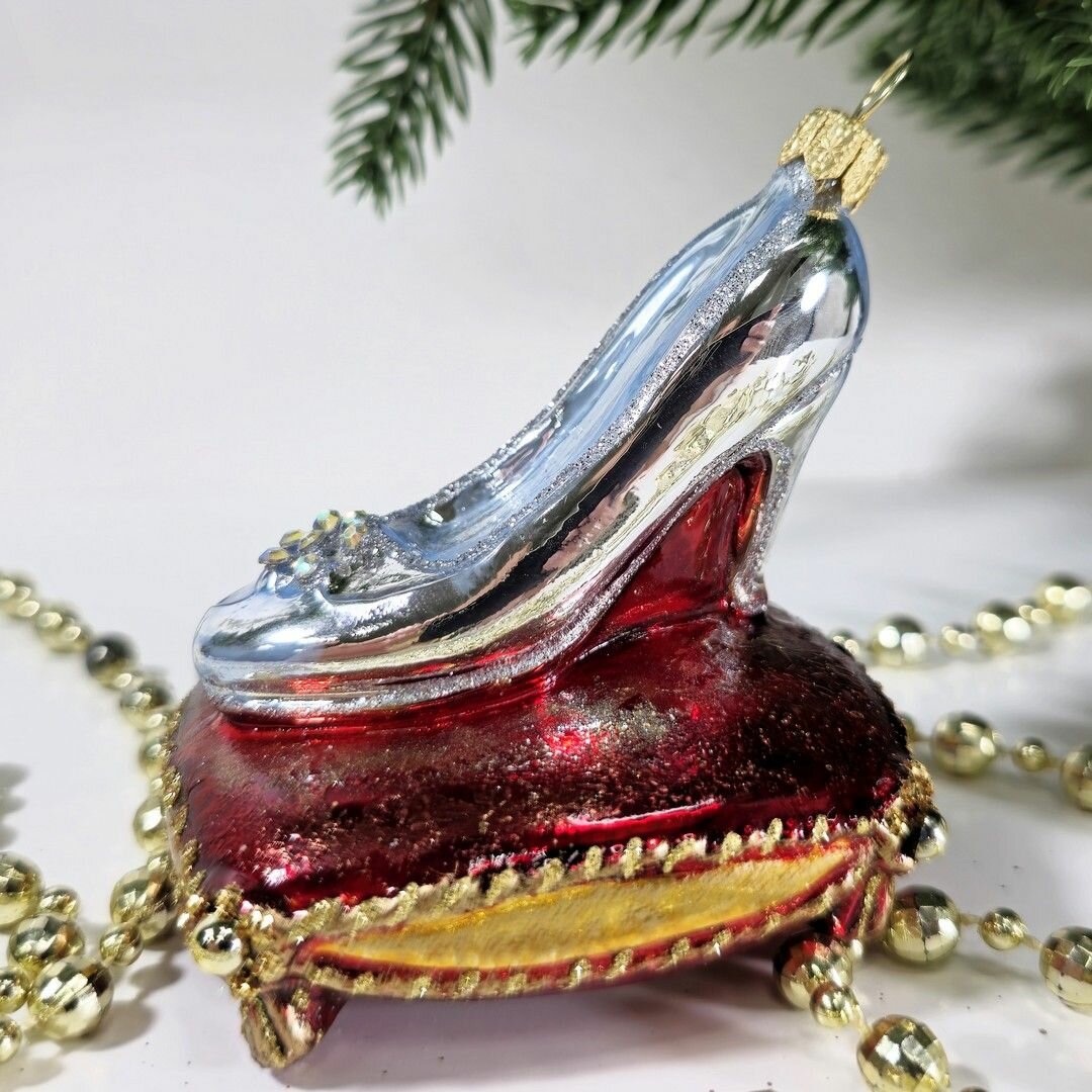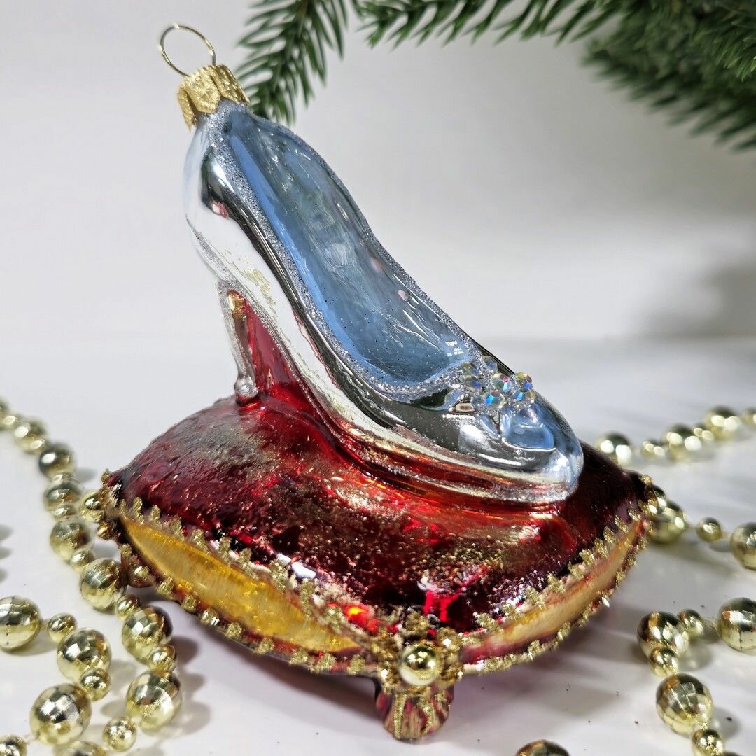 Отзывы на Irena-Co елочная игрушка, стекло Туфелька Золушки на подушке (7,5х6,5х7см)