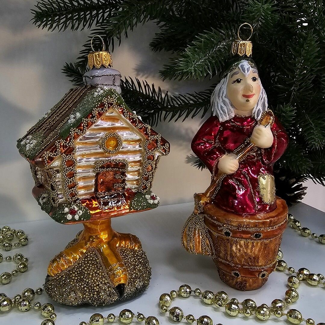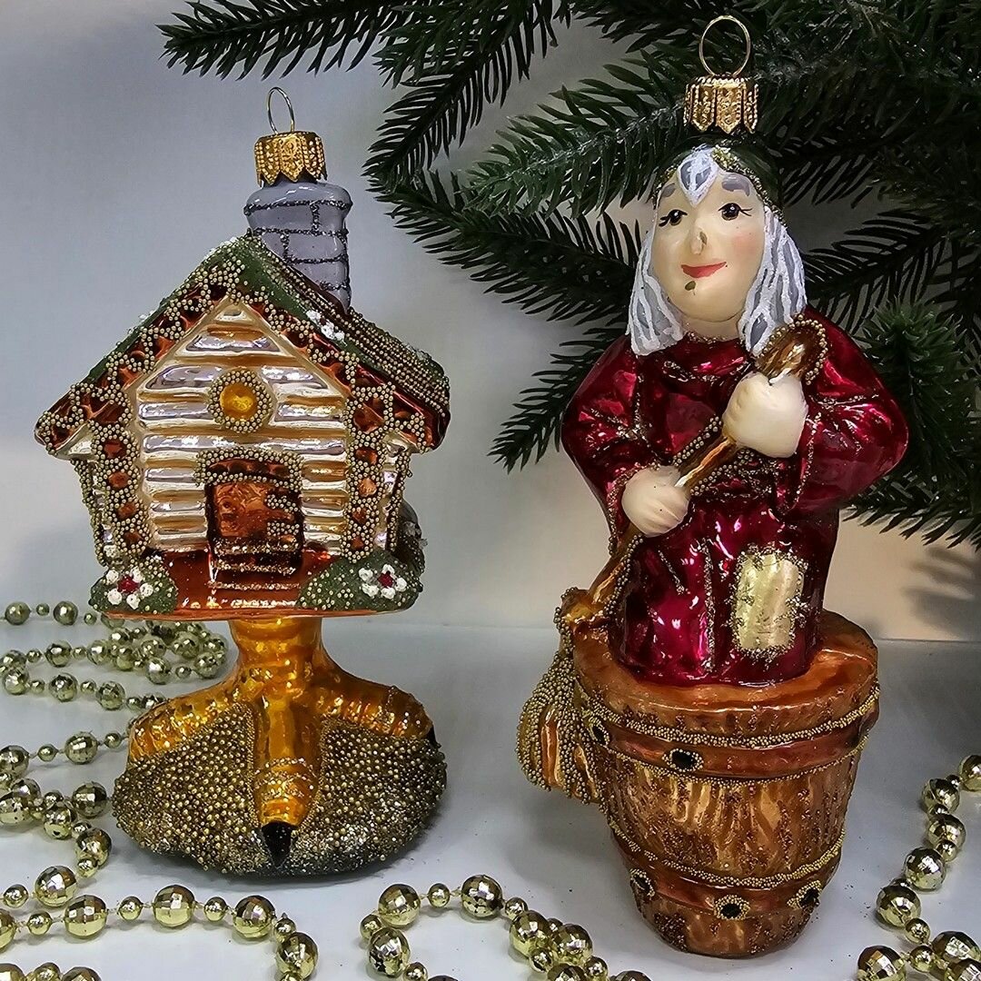 Отзывы на Irena-Co Набор елочных игрушек, стекло Баба Яга - 14,5х6,5х6, Избушка - 13х7,5х7