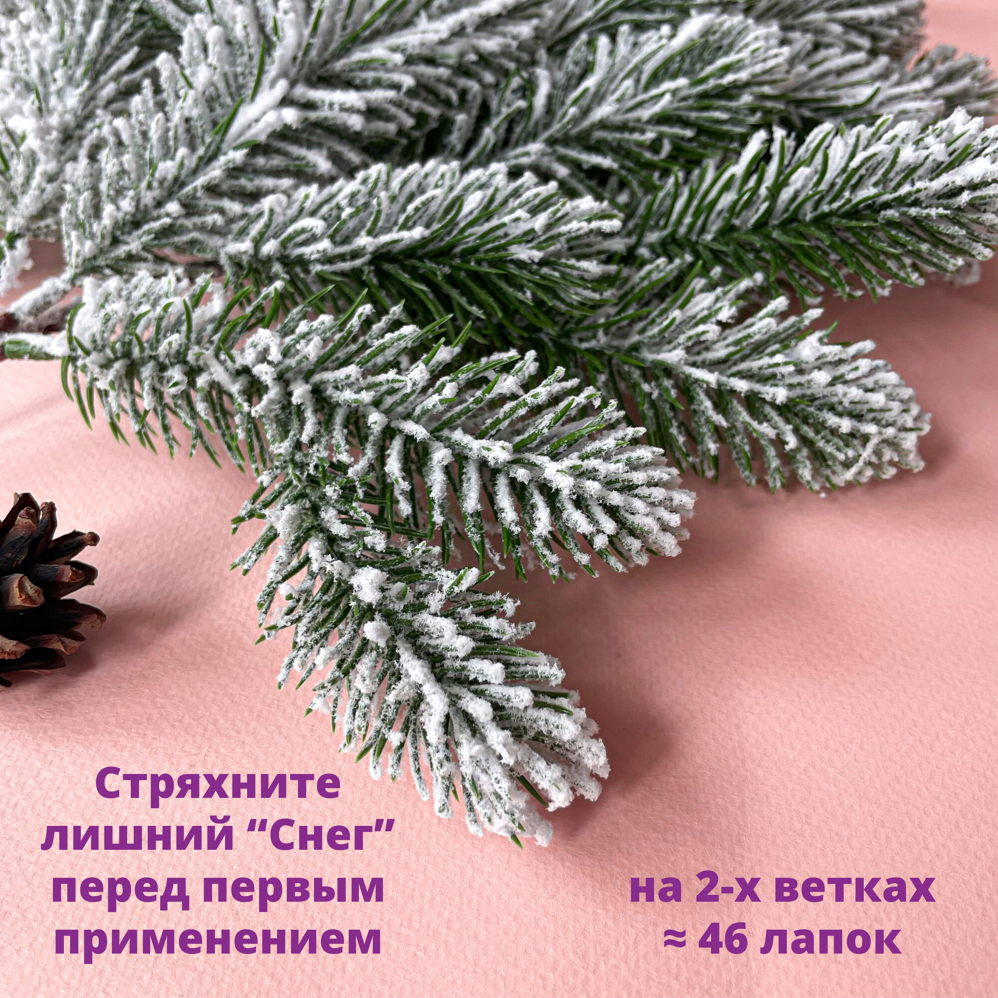 Отзывы на Еловые ветки заснеженные, искусственные, декор зимний, рождественский, набор 2 ветки, высота 45 см, 46 лапок