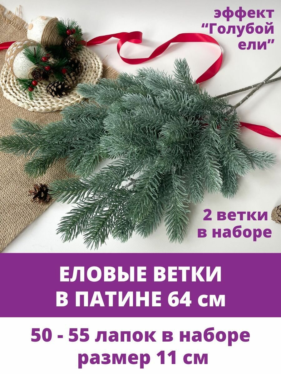 Еловые ветки искусственные, 60 см, Лапки 11 см, 28 лапок на ветке, набор 2 шт информация: