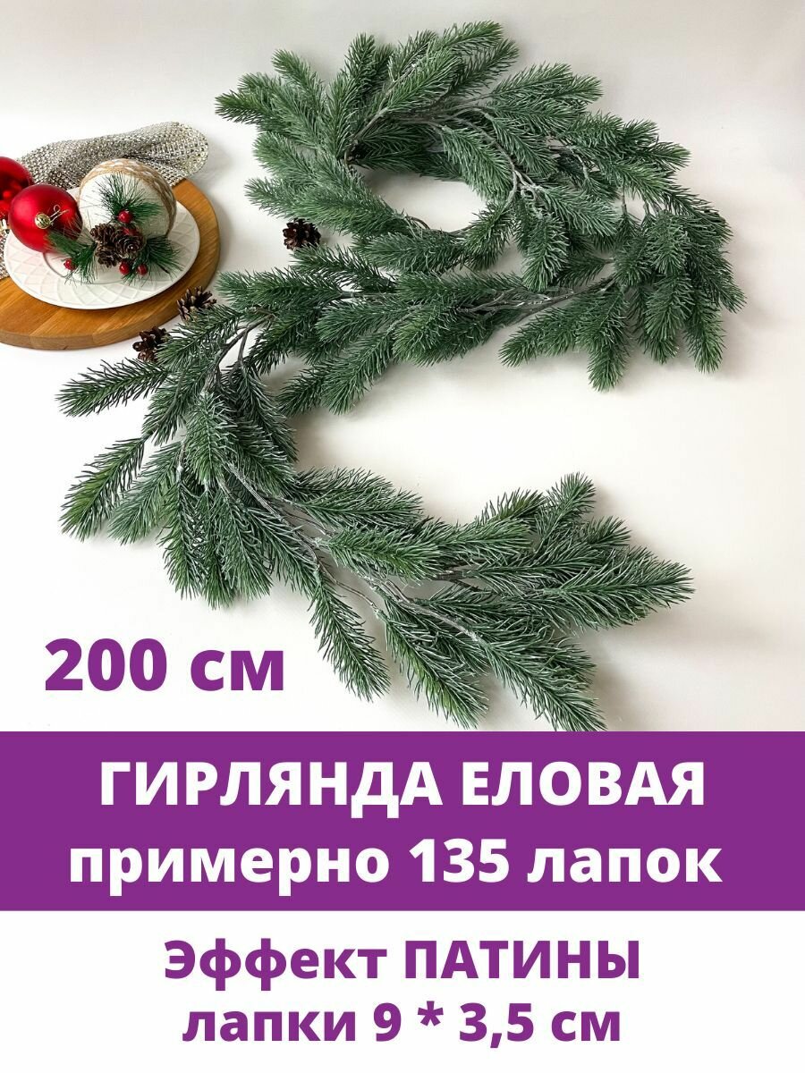 Еловая гирлянда (примерно 140 лапок), разборная, новогоднее украшение, эффект патины, длина 200 см. информация: