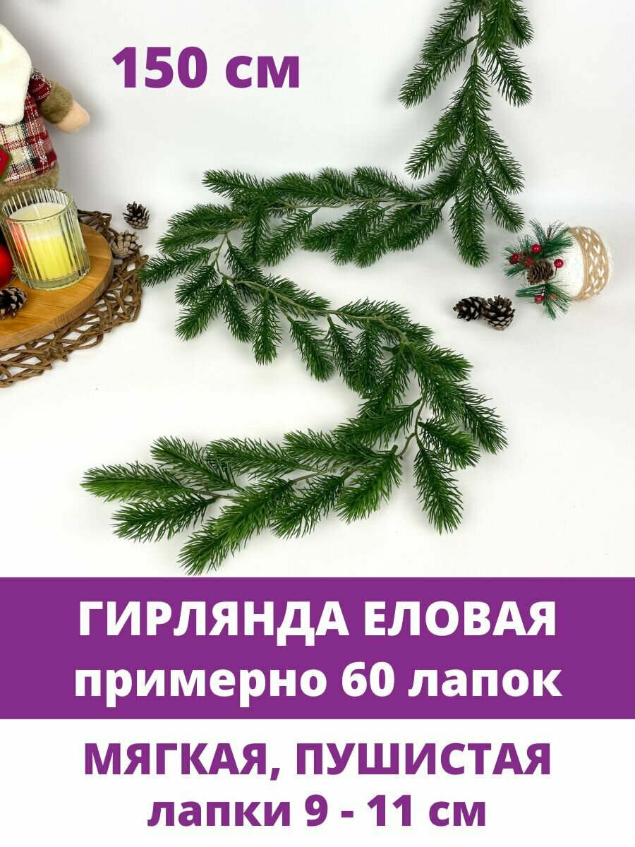 10 цен на Лиана из еловых лапок (примерно 60 лапок), разборная, новогоднее украшение, цвет хвойно-зеленый, длина 150 см.