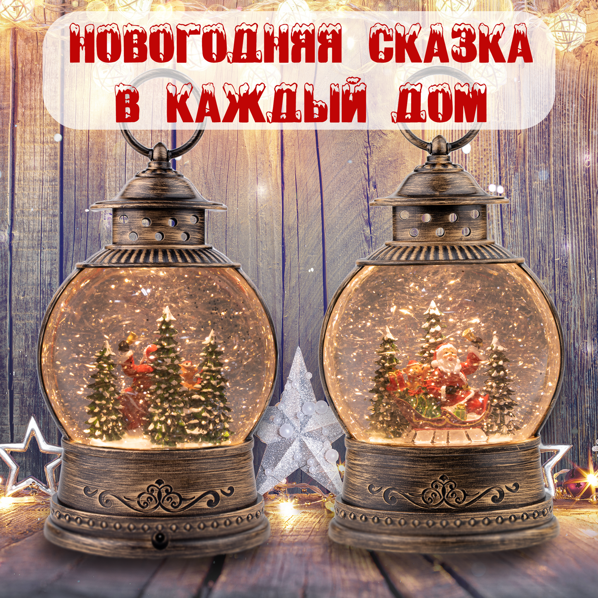 10 цен на Светильник декоративный новогодний, новогодний фонарь музыкальный со снегопадом, снежный шар.