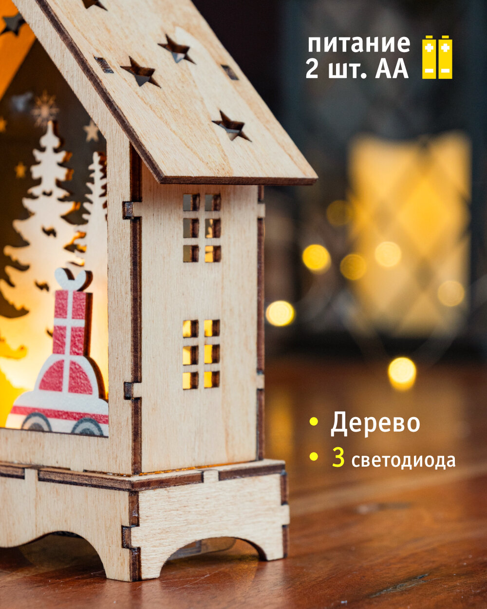 Фигурка декоративная "Домик" с подсветкой, L10,5 W8,2 H10 см, (2хLR44 прилаг)