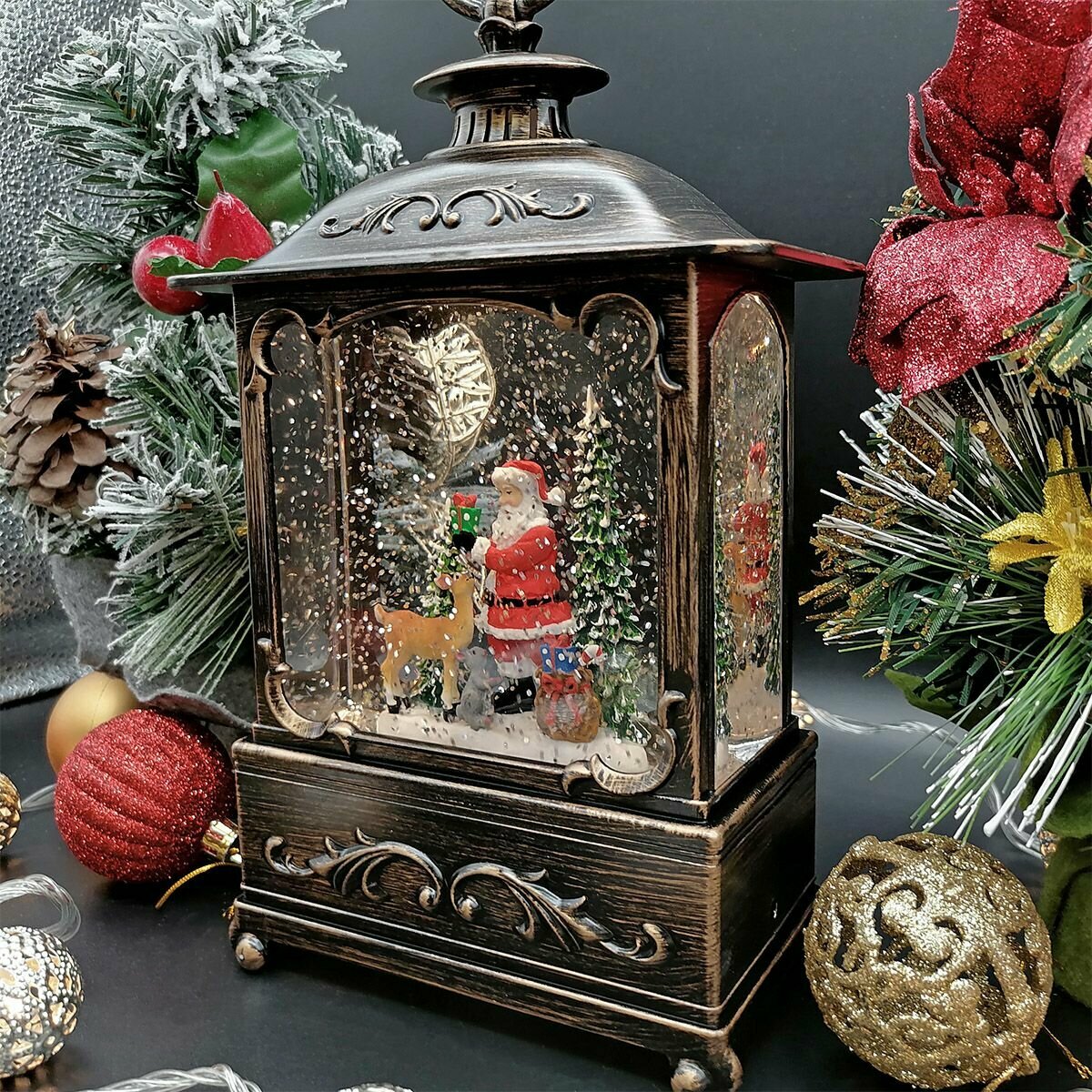 10 цен на Новогодний фонарь и светильник "Рождество" с метелью и новогодней музыкой