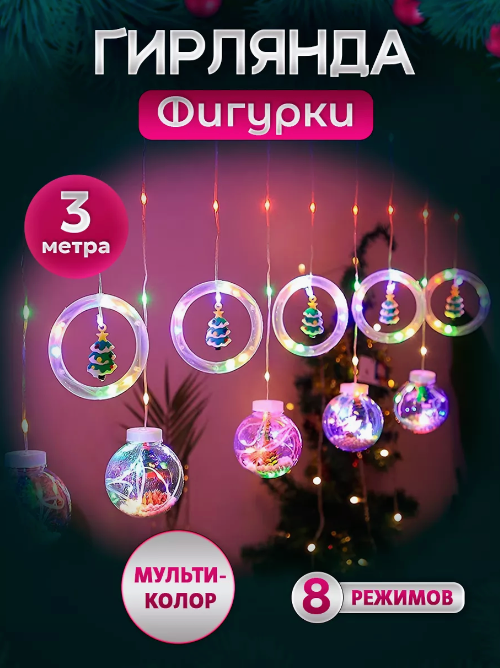 Светодиодная гирлянда новогодняя шары на окно и стену. / Разноцветный информация:
