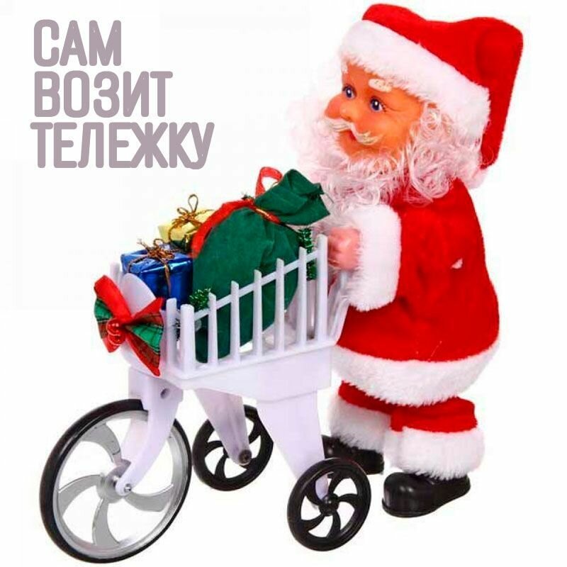 Музыкальный Дед Мороз везет тележку Санта-Клаус игрушка к Новому Году информация: