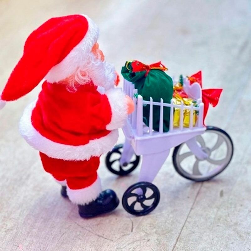 10 цен на Музыкальный Дед Мороз везет тележку Санта-Клаус игрушка к Новому Году