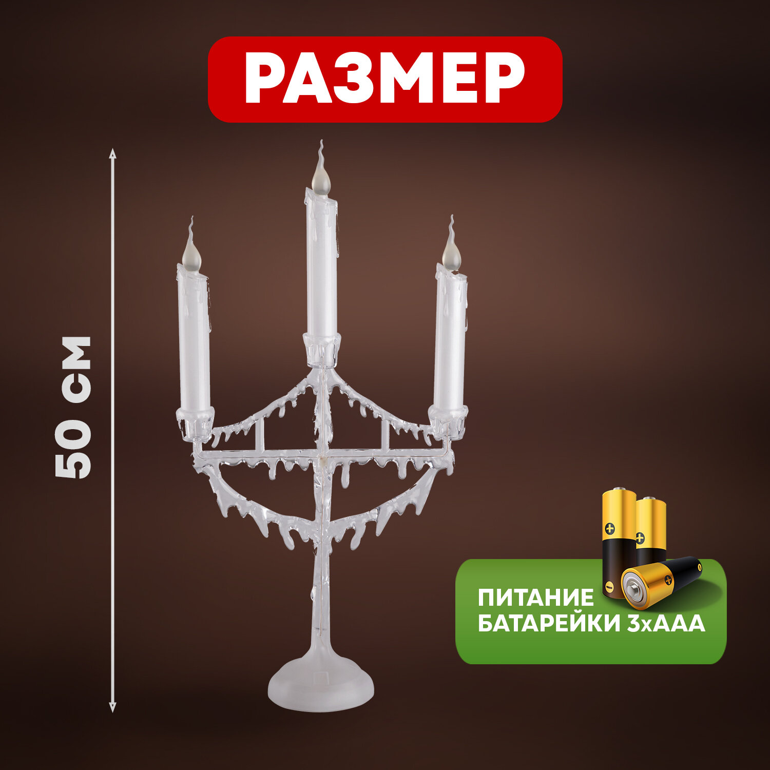 Фигура на подставке NEON-NIGHT "Подсвечник со свечками", IP20, 50см, батарейки ААА информация: