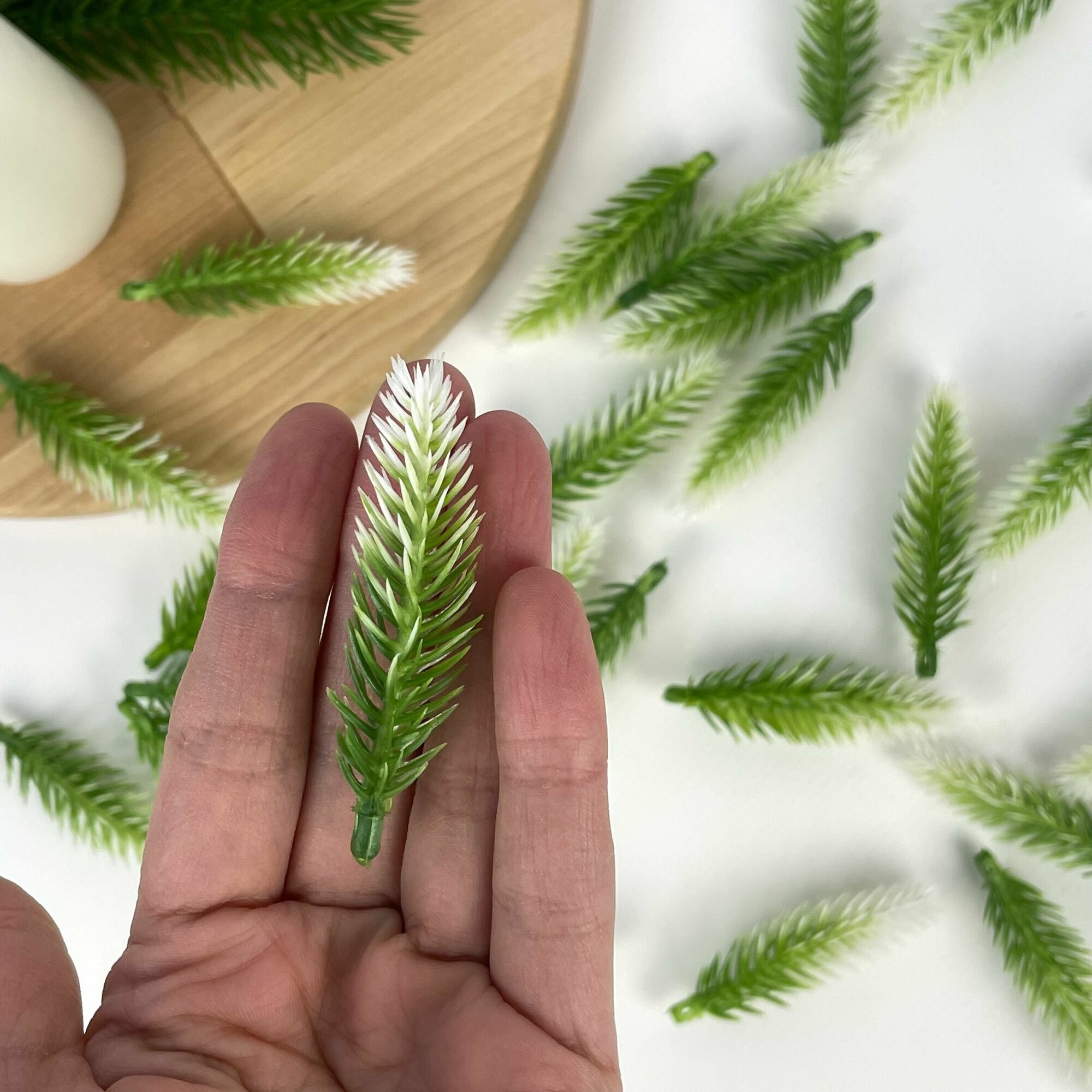Отзывы на Еловая лапка искусственная, бело-зеленая, мини, декор зимний, рождественский, 5,5-6 см, 30 штук