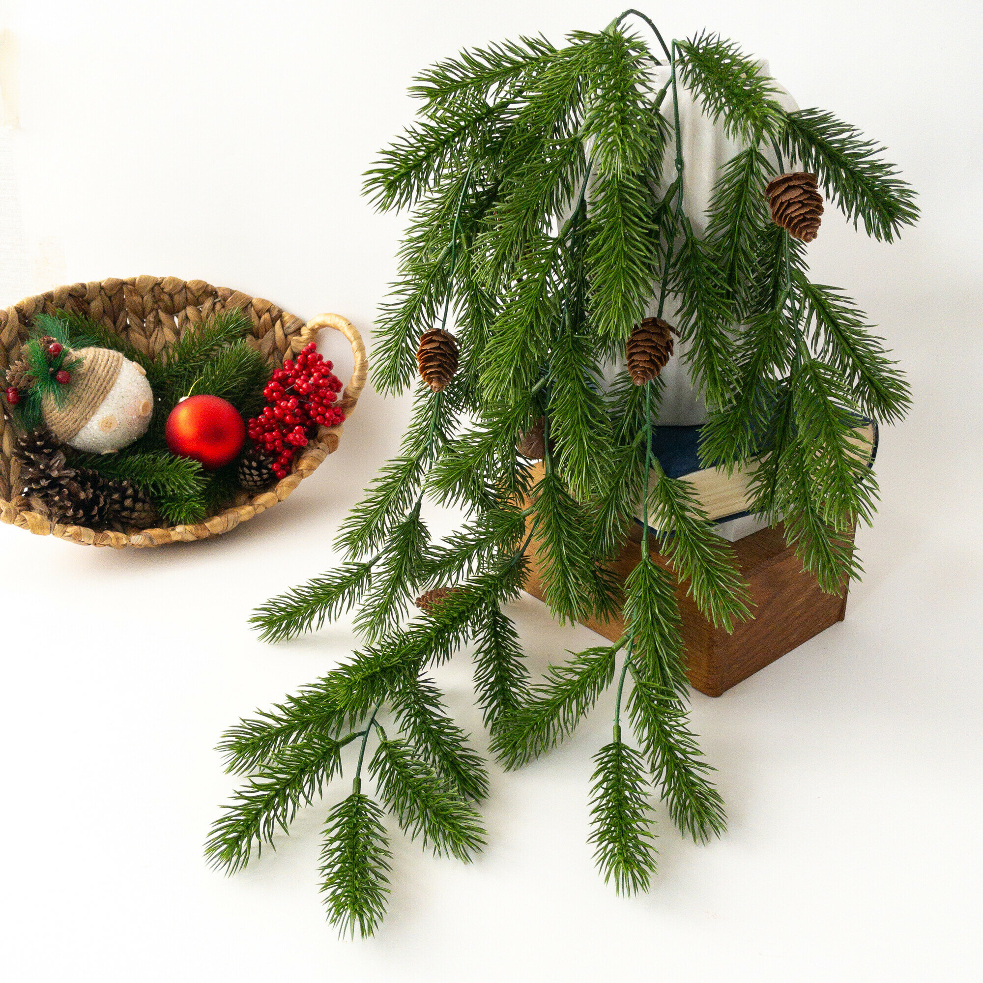 Отзывы на Еловая ветка для декора, искусственая зелень свисающая, 77 см, 1 шт