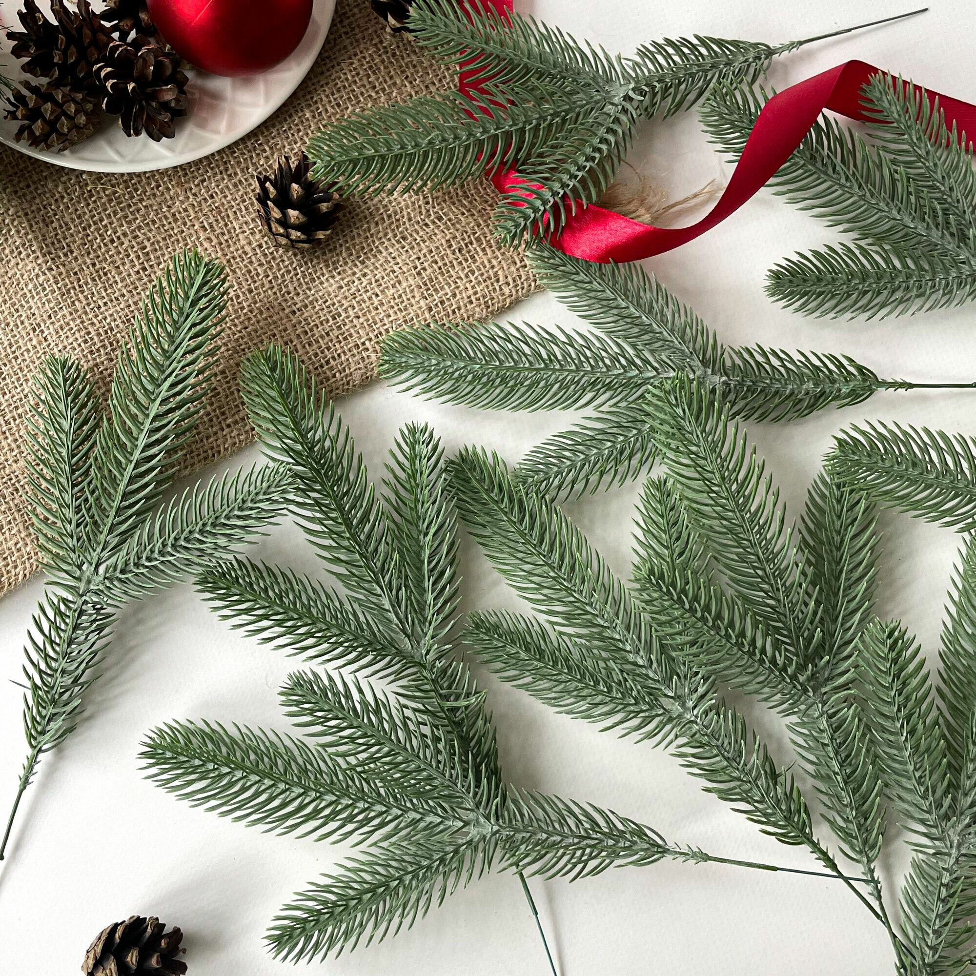 Еловые ветки для декора, искусственные, новогодний декор, 39 см, лапки 9-12 см, 10 веток. 660 ₽