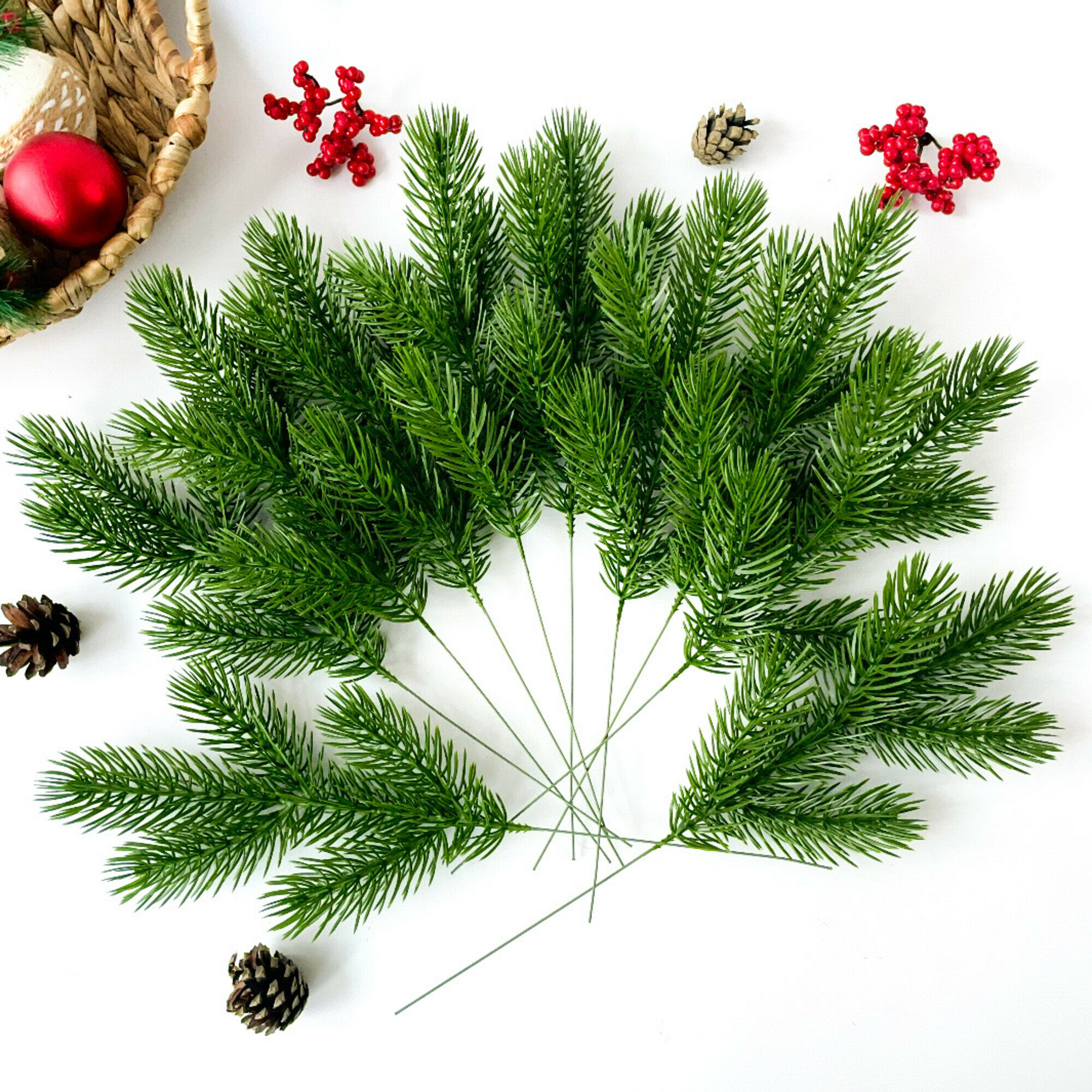 Отзывы на Еловые ветки для декора, искусственные, новогодний декор, 39 см, лапки 9-12 см, 10 веток.