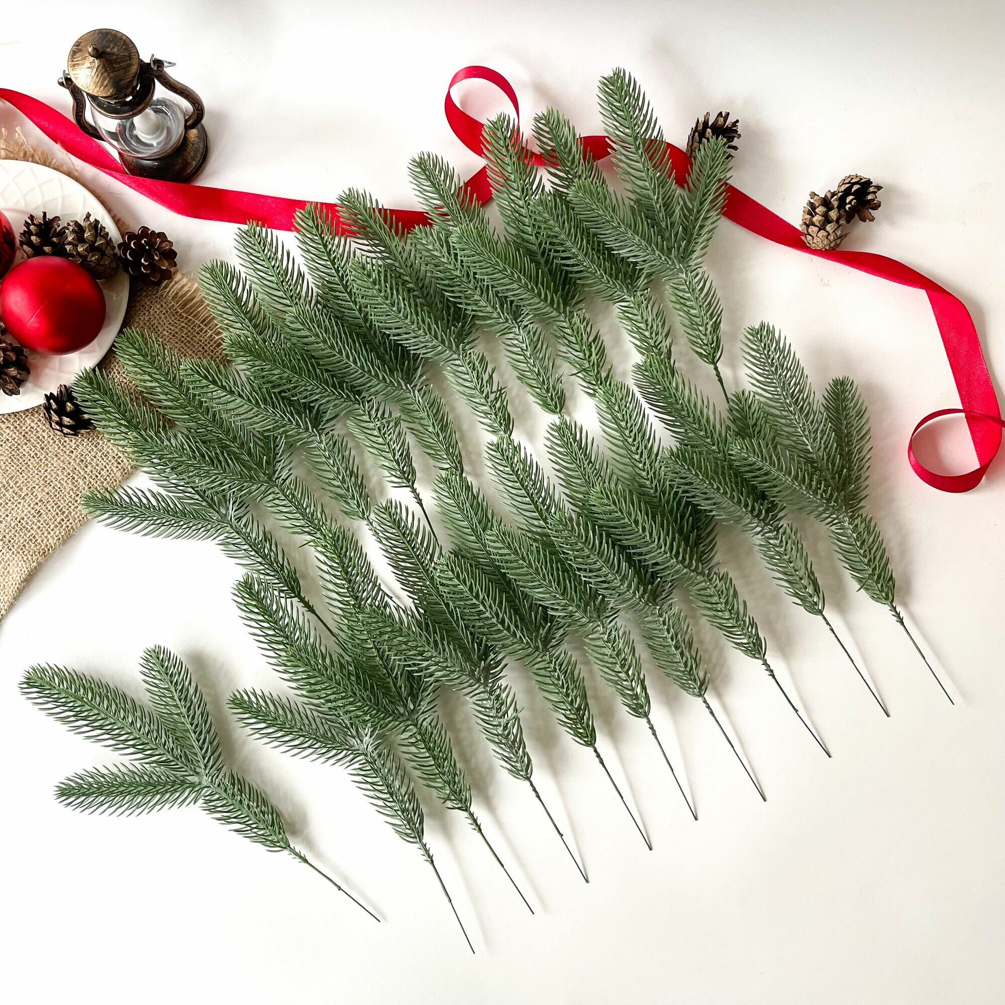 Отзывы на Еловые ветки искусственные, эффект патины, 26 см , 3 лапки на ветке, набор 20 шт
