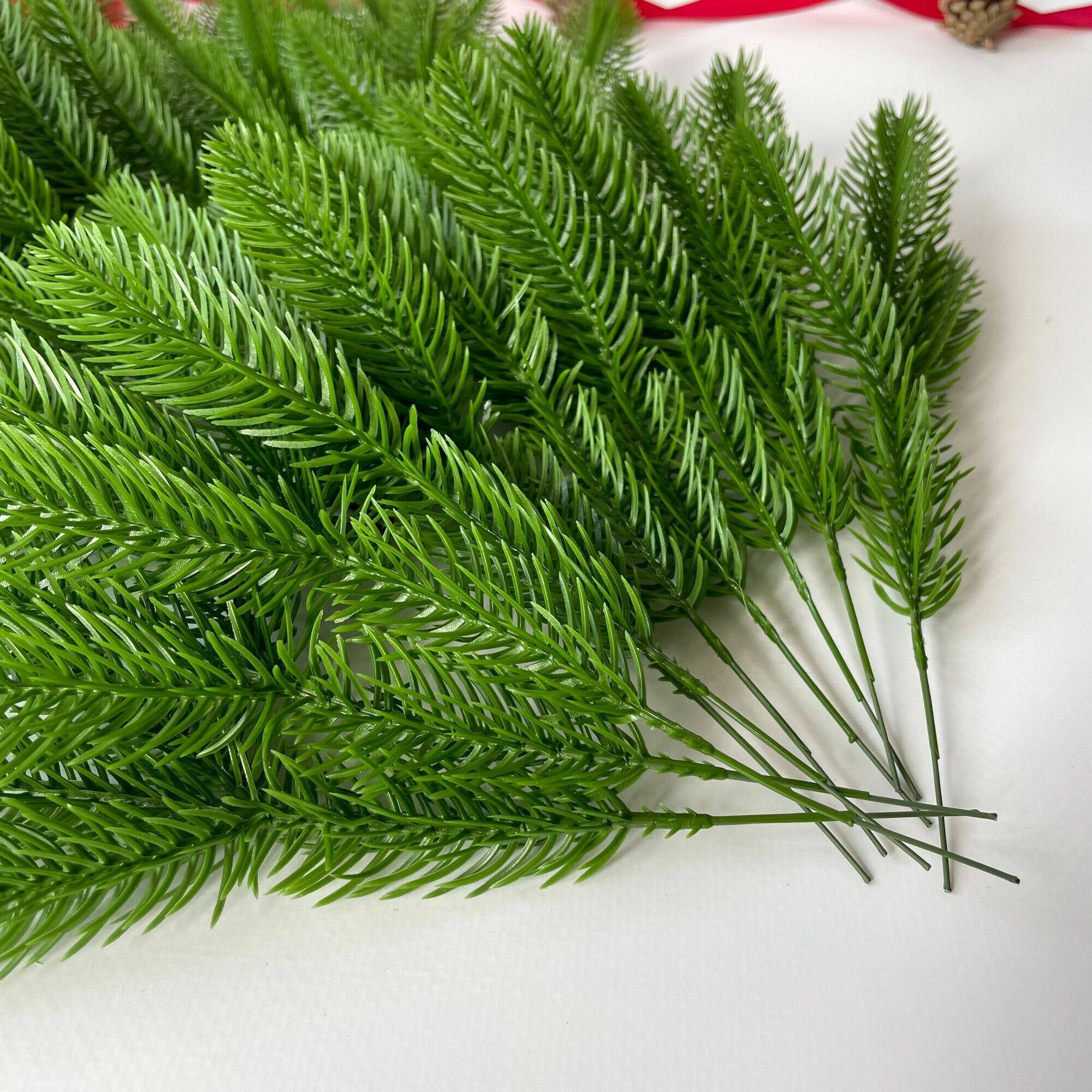 Отзывы на Еловая ветка, декор зимний, рождественский, 3 лапки, 25 см, набор 10 веток