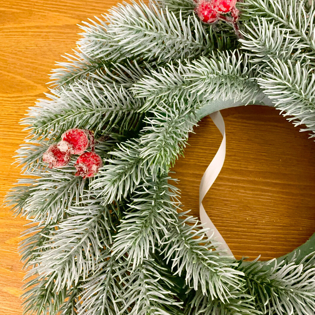 Отзывы на Венок новогодний еловый, с эффектом патины, заснеженности, с ягодами, искусственный, 38 см, 1 шт.