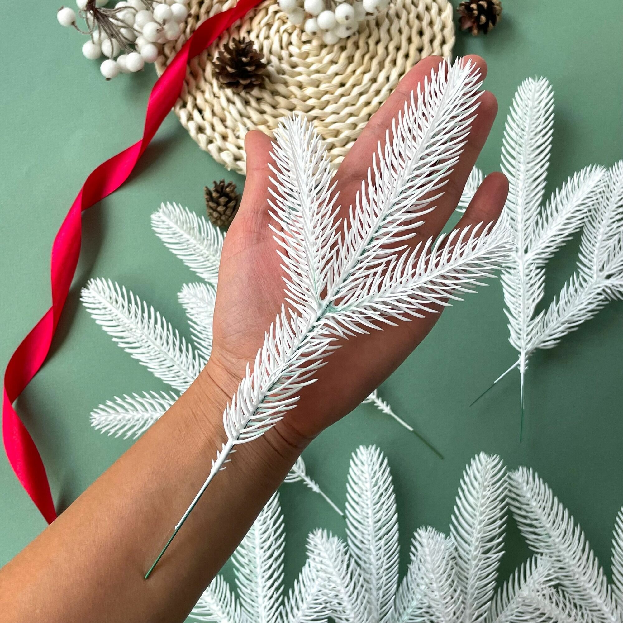 10 цен на Еловые ветки и лапки искусственные для декора, 3 лапки на ветке, Белые 24 см, 30 веток
