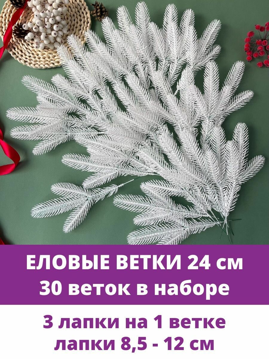 Еловые ветки и лапки искусственные для декора, 3 лапки на ветке, Белые 24 см, 30 веток информация: