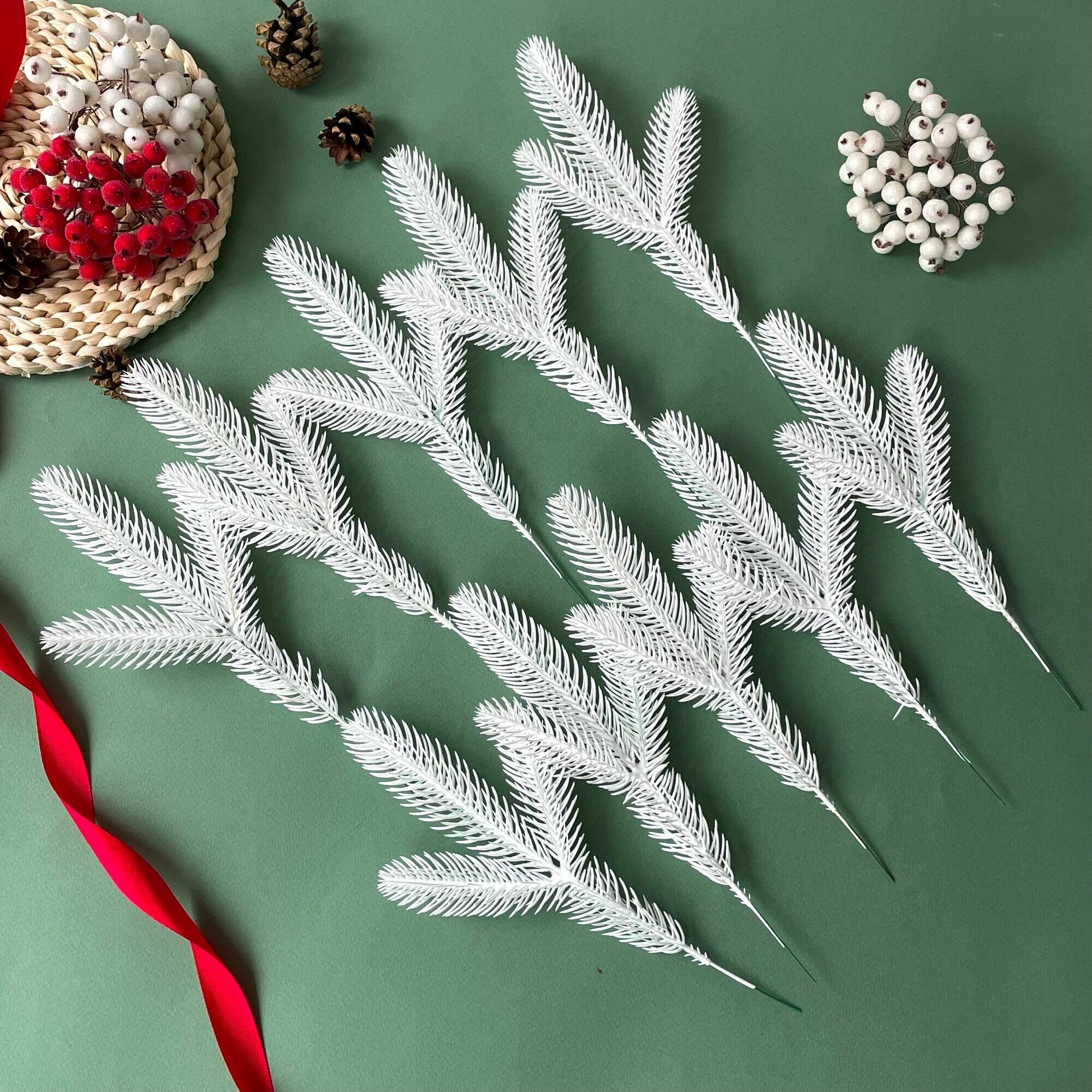 10 цен на Еловые ветки и лапки искусственные для декора, 3 лапки на ветке, Белые 24 см, 10 веток