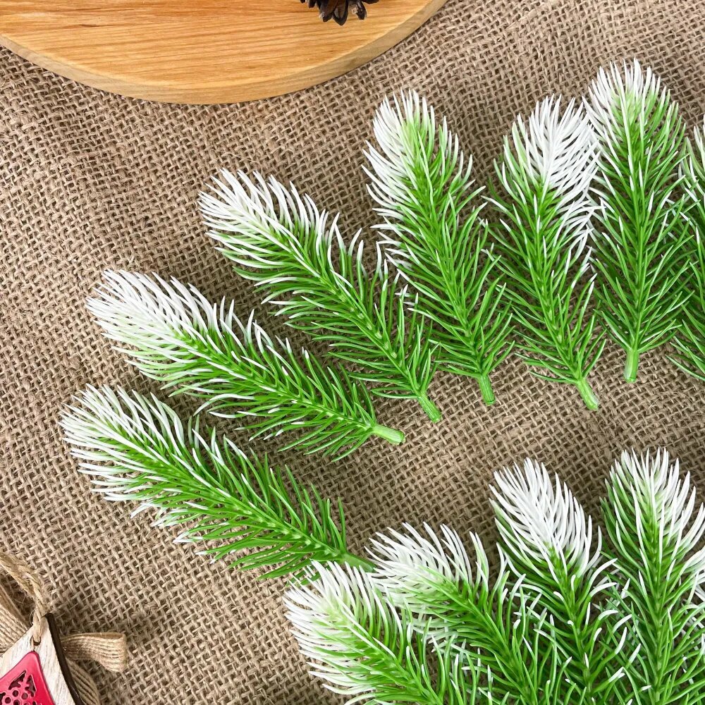 Отзывы на Еловая ветка, еловая лапка искусственная, Бело-зеленая, декор зимний 11 см, 20 штук