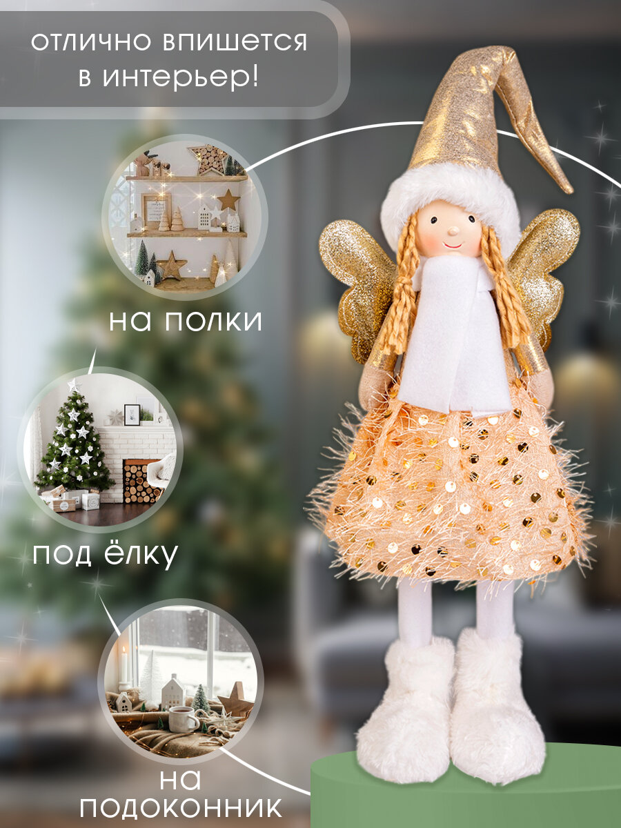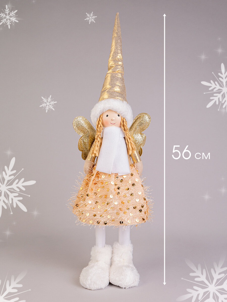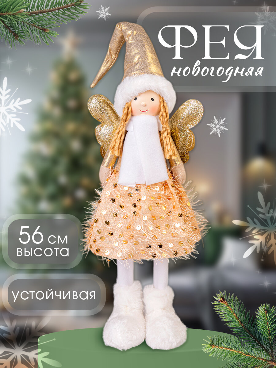 10 цен на Новогодняя Фея с золотым колпачком под елку, на длинных ножках, 56 см