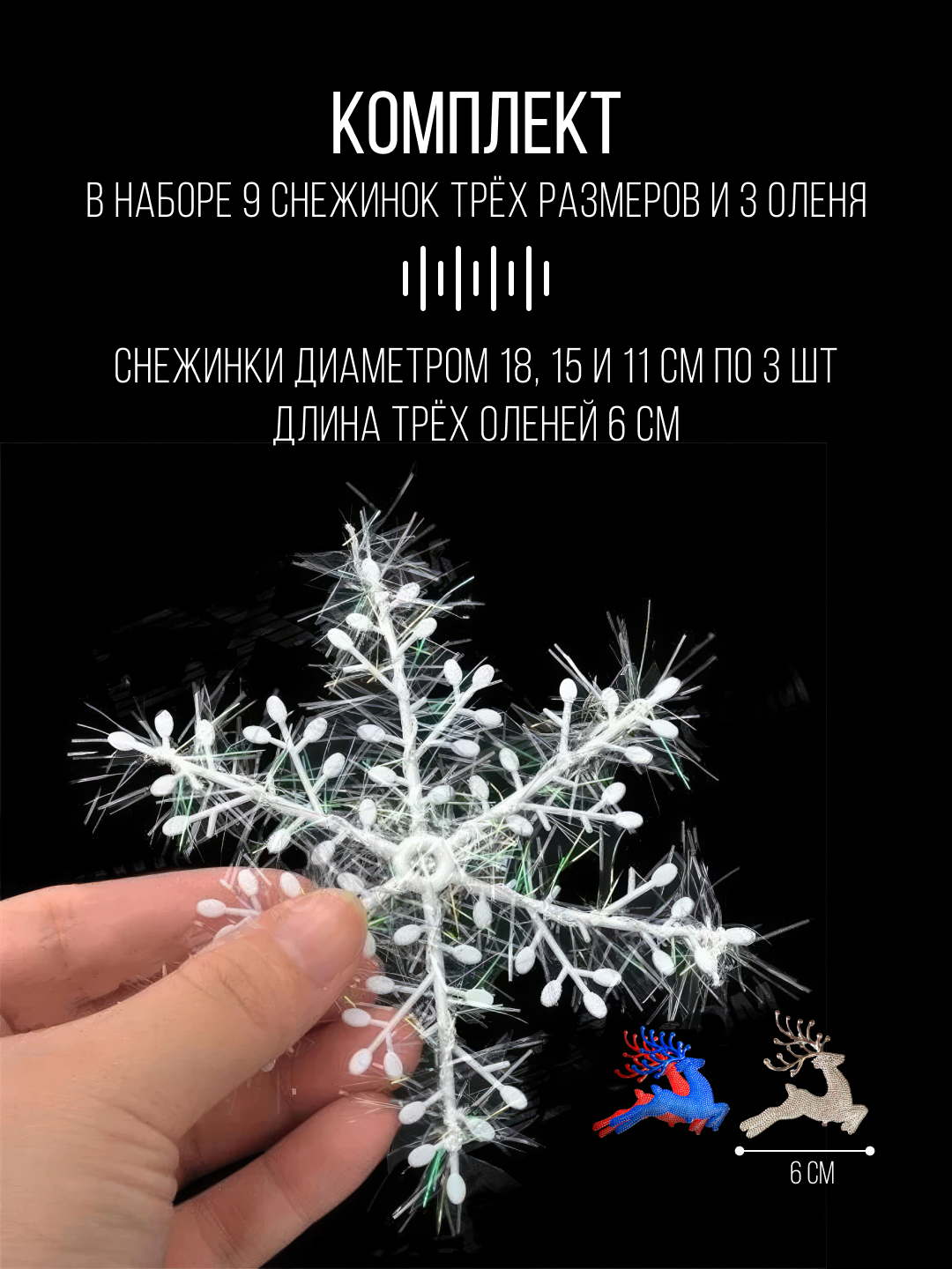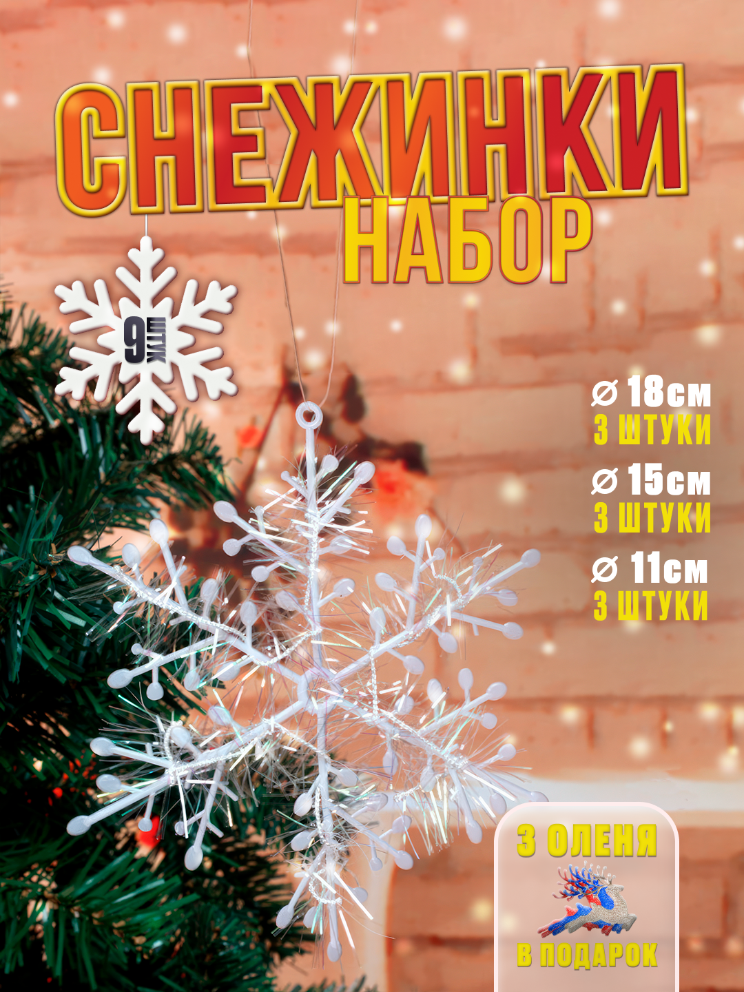 Набор рождественских снежинок 9 шт для украшения интерьера, комплект новогодних снежинок 9 штук информация: