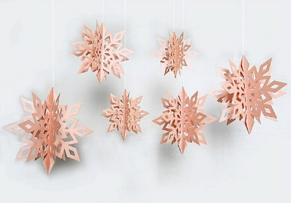3D Бумажные гирлянды подвески 12 Снежинок больших цвет бронза 978 ₽