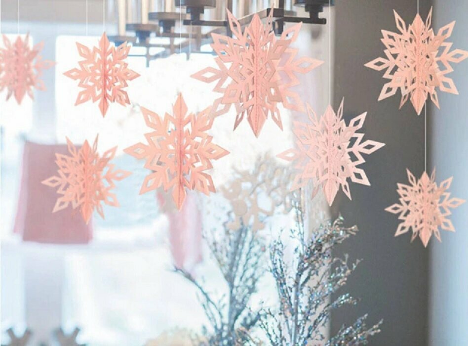 3D Бумажные гирлянды подвески 24 Снежинки большие 4 цвета 1 801 ₽