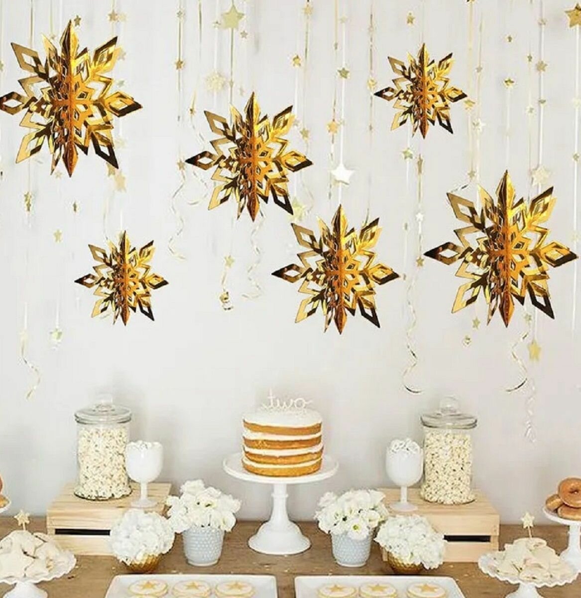 3D Бумажные гирлянды подвески 30 Снежинок больших цвет золотой 1 790 ₽