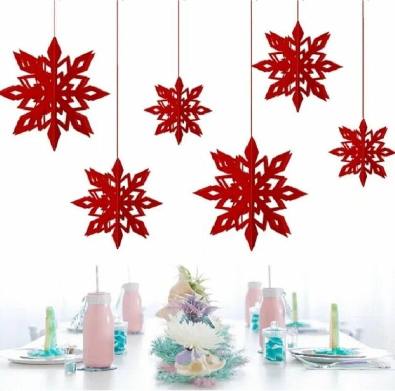 3D бумажные гирлянды подвески В виде снежинок большая красная 496 ₽