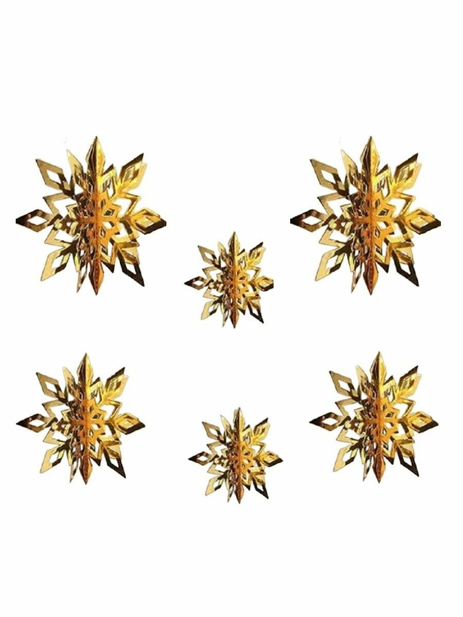 10 цен на 3D Бумажные гирлянды подвески 18 Снежинок больших цвет золотой