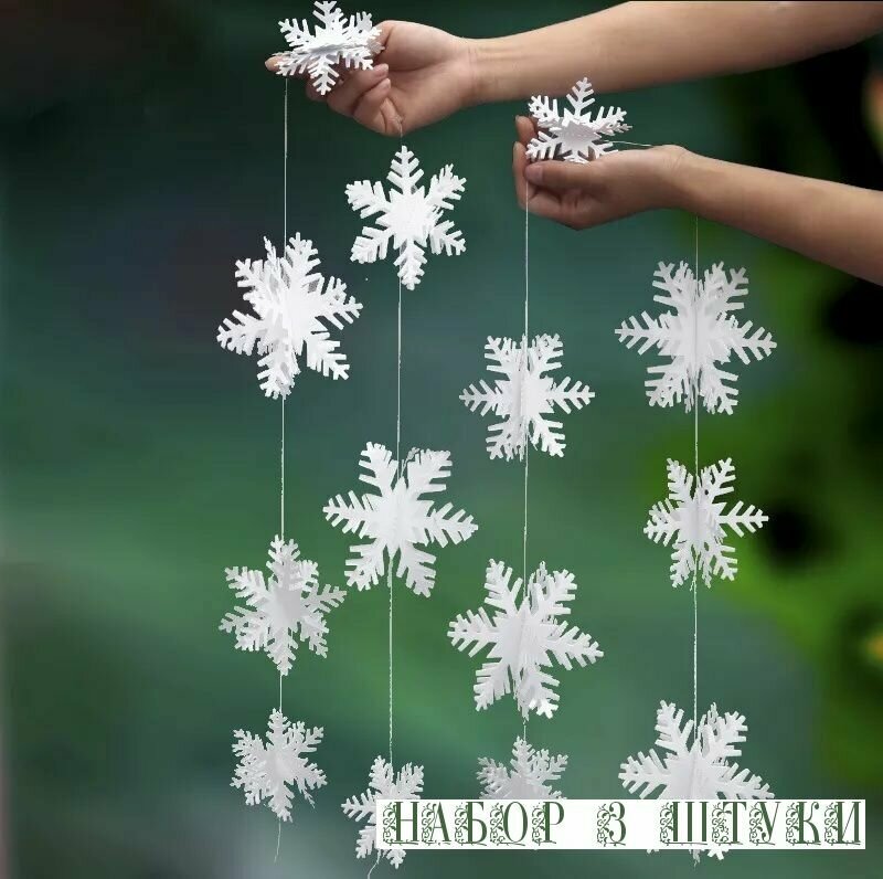 Отзывы на Набор "Рождественские снежинки", украшение 3D, Гирлянда-3шт 280 см белый