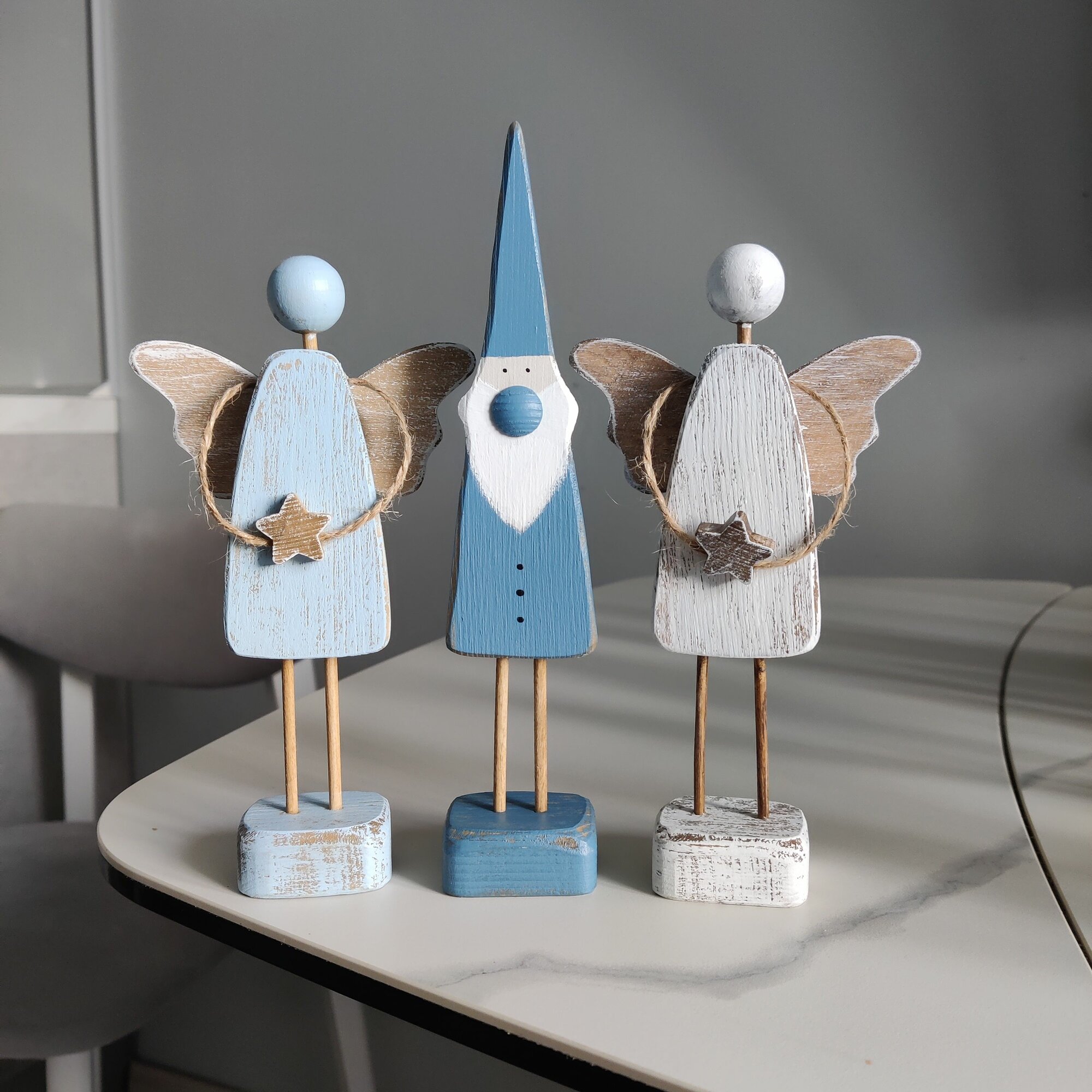 10 цен на Фигурка интерьерная "Гномик", синий, деревянная, ручная работа