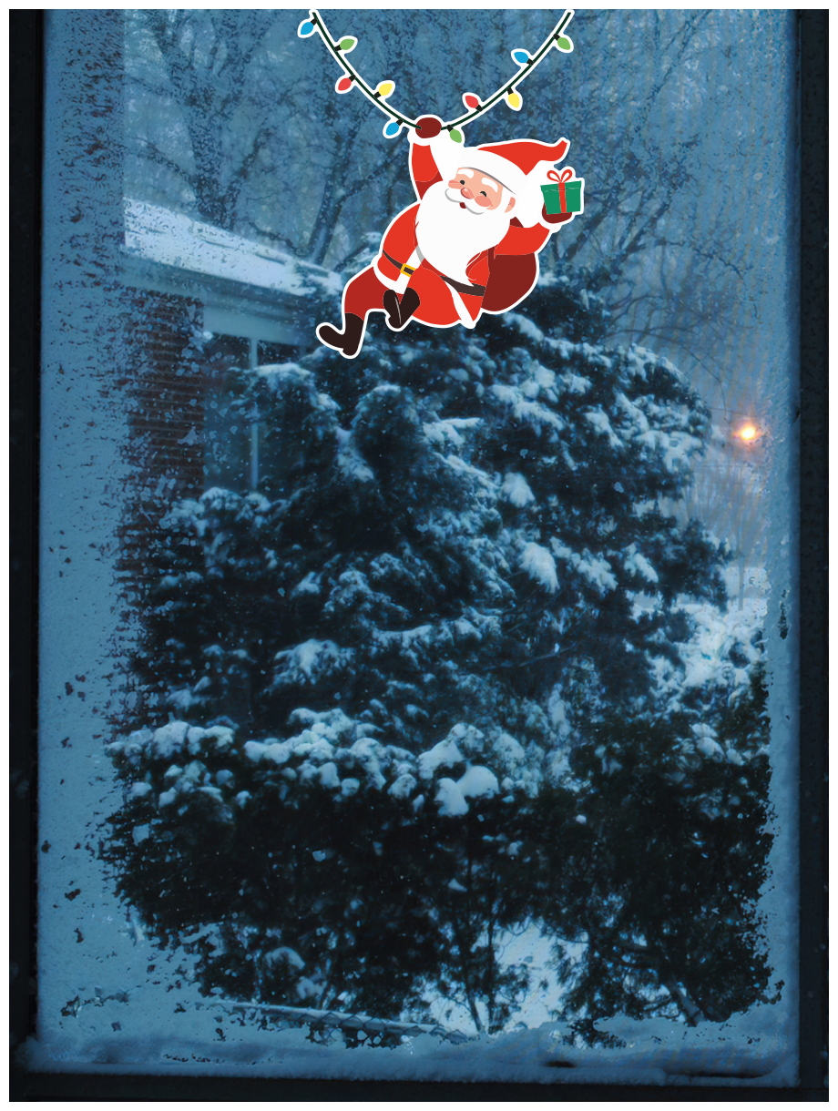 Наклейки новогодние для украшения интерьера / Дед Мороз с гирляндой и подарком / 33х27 см. информация: