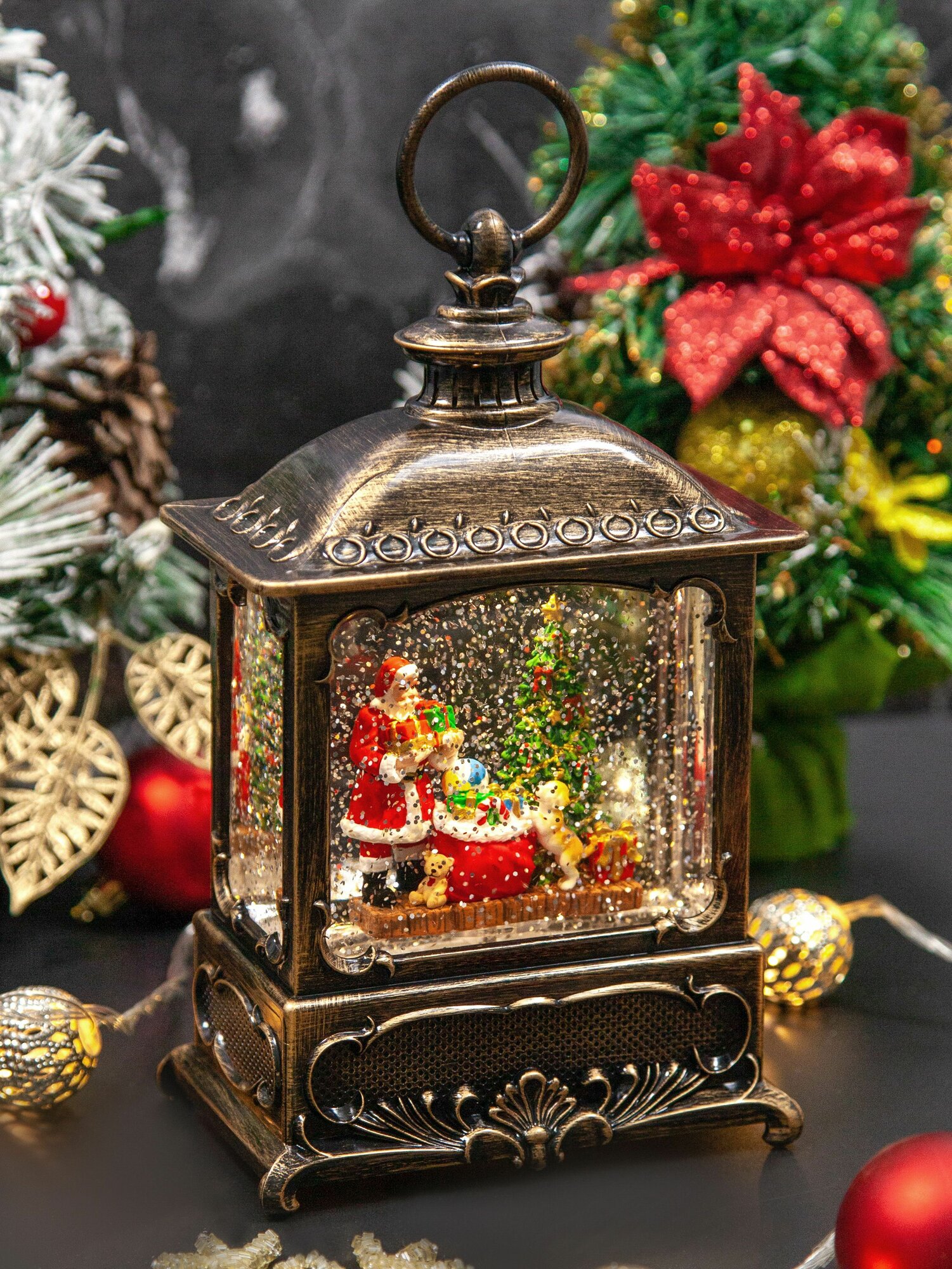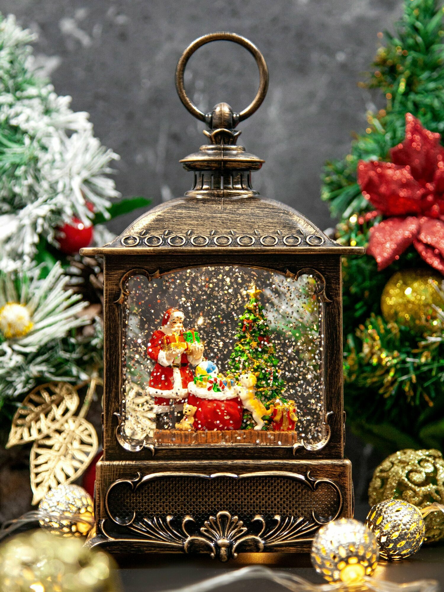 10 цен на Новогодний фонарь и светильник "Подарки под елкой" с метелью и новогодней музыкой