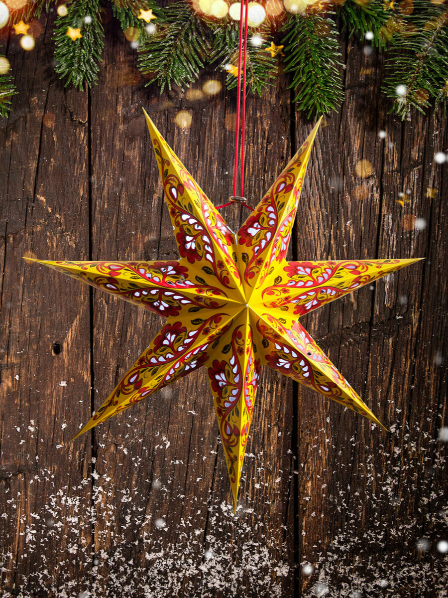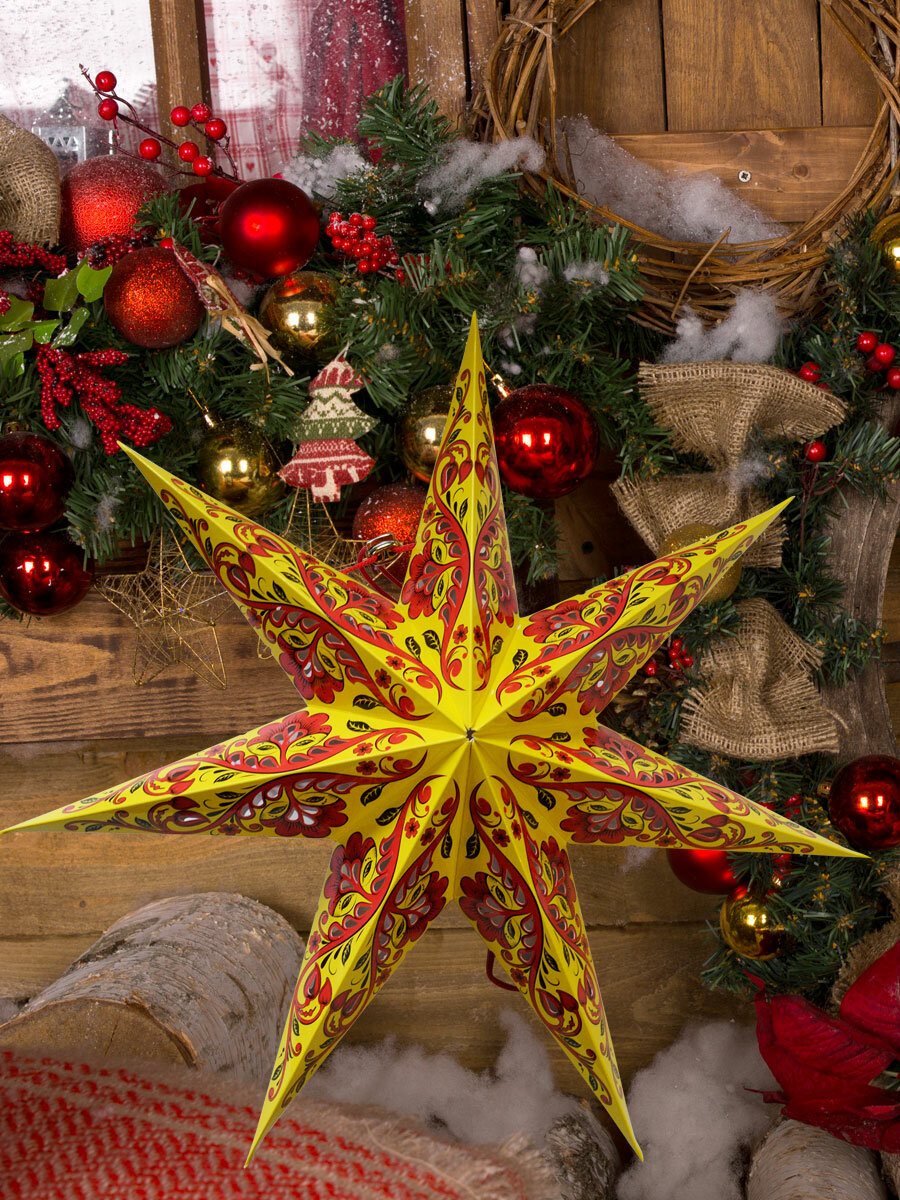 Рождественская звезда TEAVIT "хохлома" желтая, картонная, 57 см. информация: