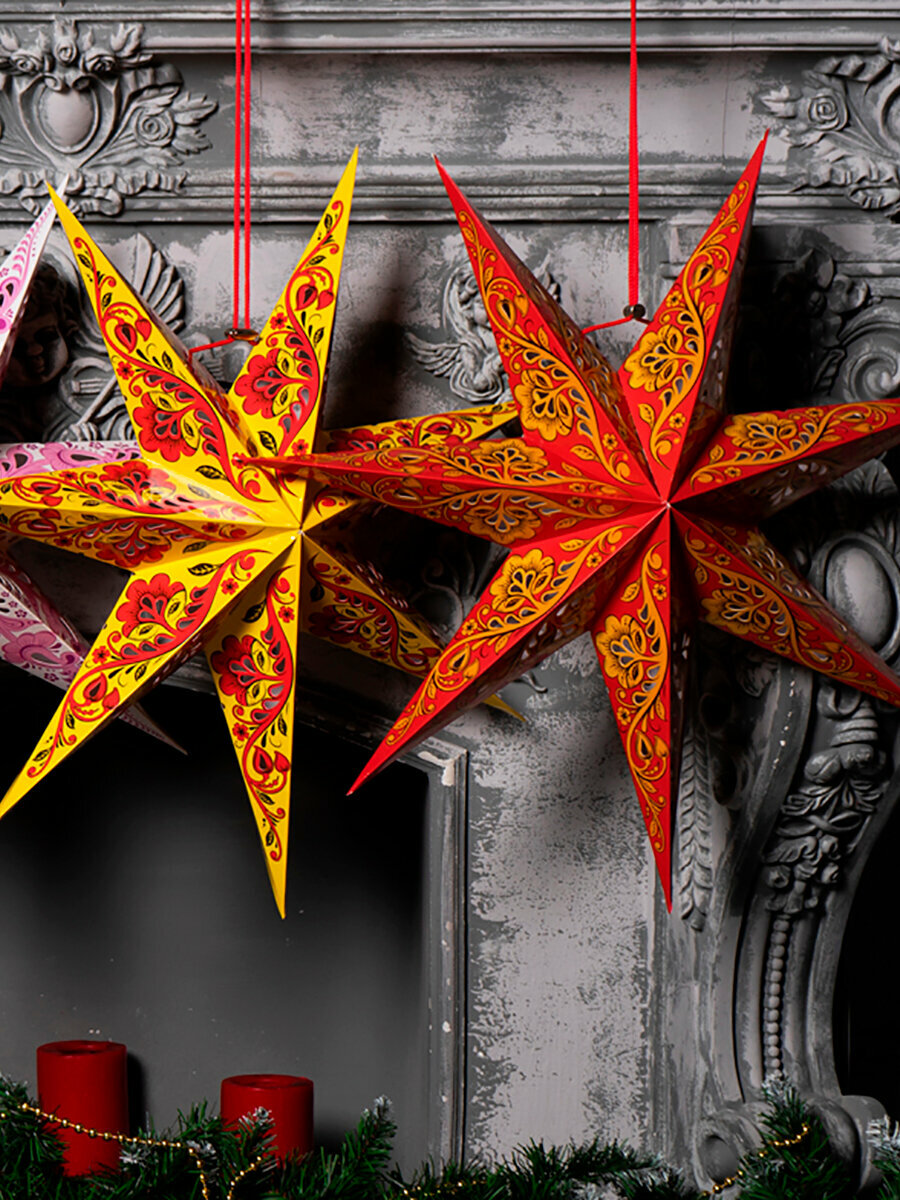 Отзывы на Рождественская звезда TEAVIT "хохлома" желтая, картонная, 57 см.