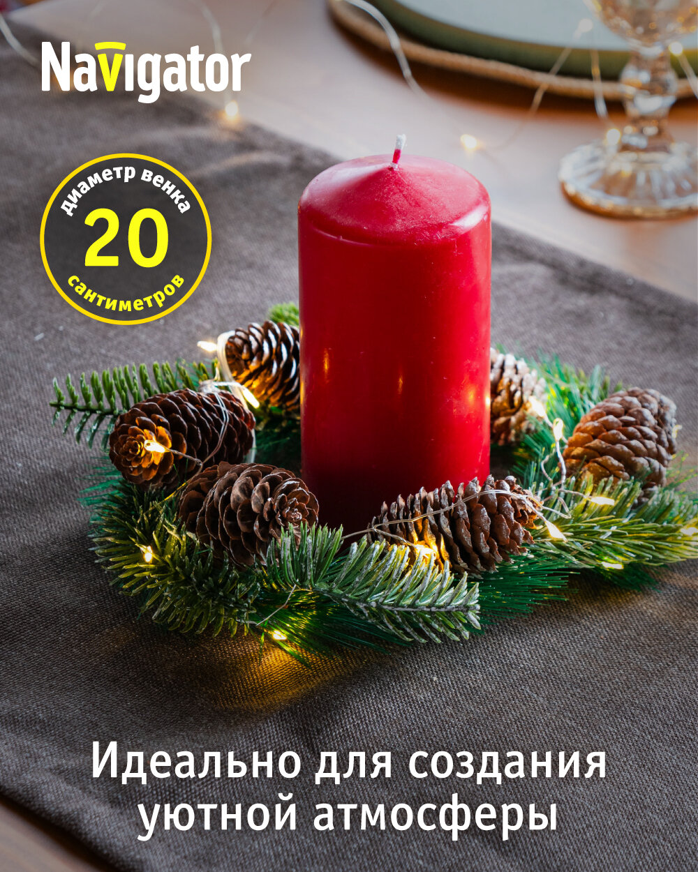 Отзывы на Гирлянда «рождественский венок» на батарейках Navigator 95 036 "Шишки"