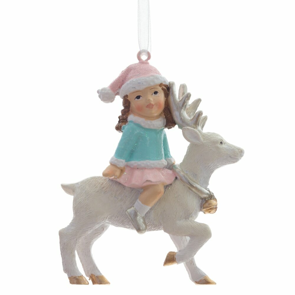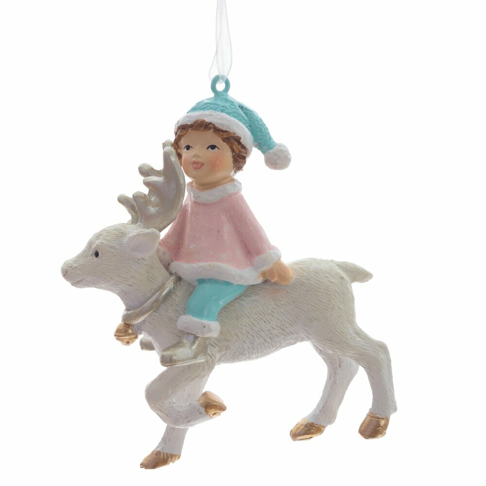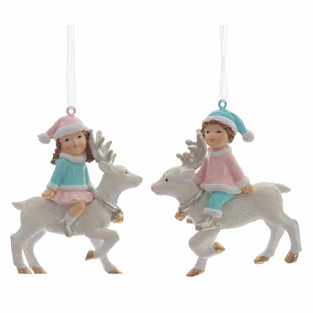 Изделие декоративное подвесное "Мальчик/Девочка на олене", L7 W3,5 H8,5 см, 2в. информация: