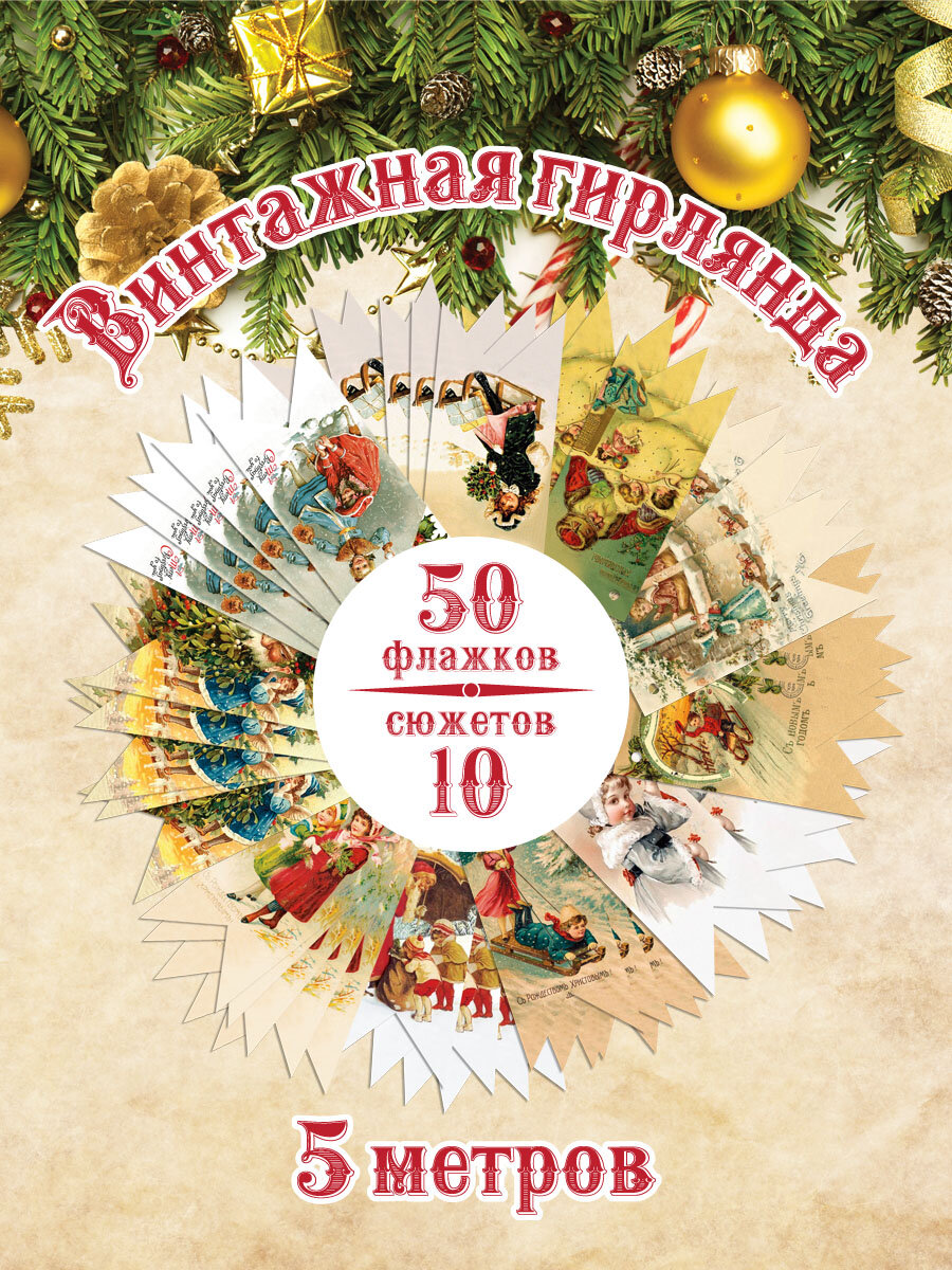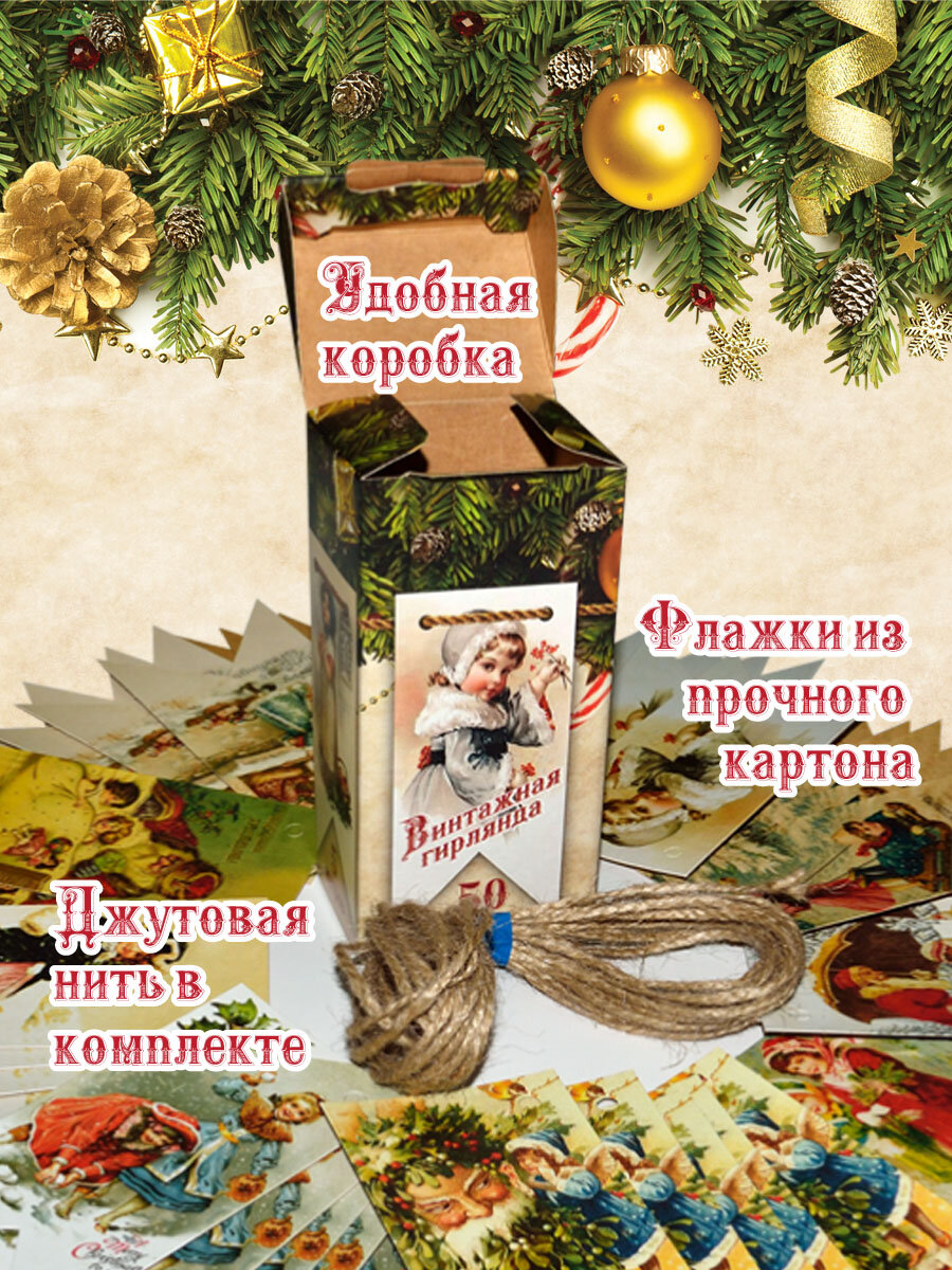 10 цен на Гирлянда новогодняя – флажки винтажные, 50 шт.