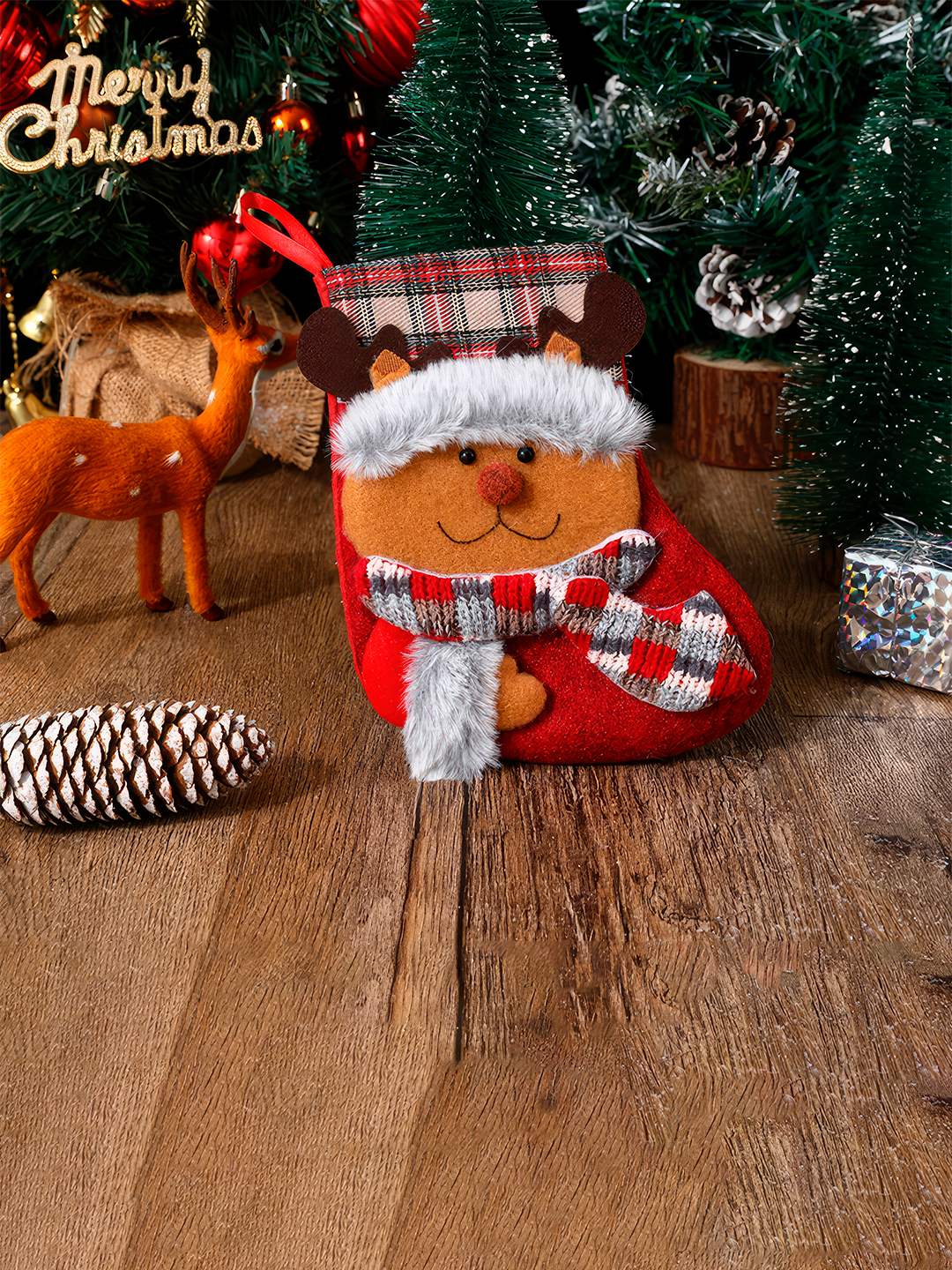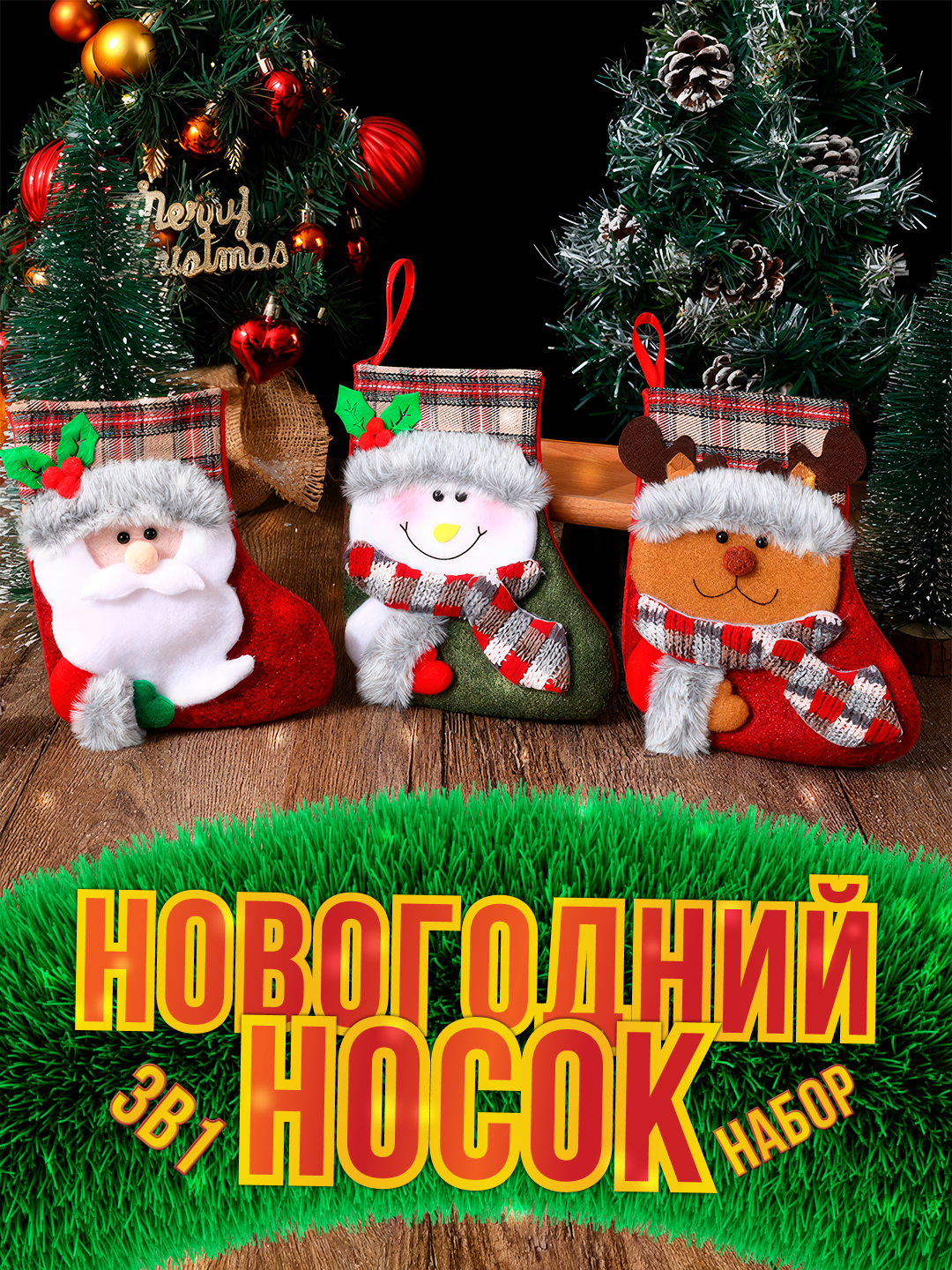 Отзывы на Новогоднее праздничное украшение "Рождественский чулок, новогодний носок для конфет с Дед Морозом", набор из 3