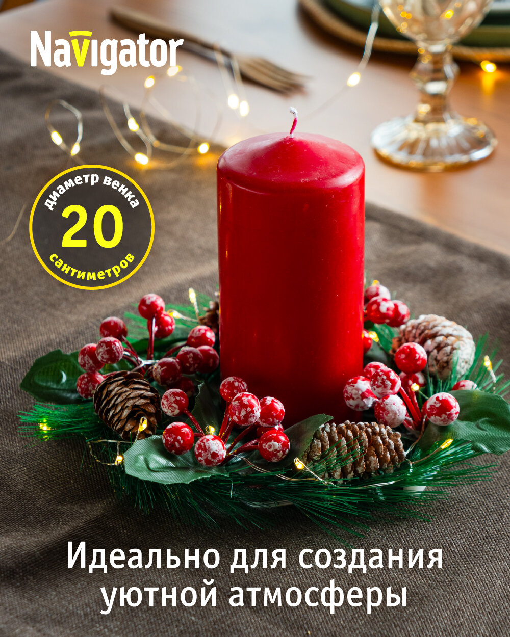 Отзывы на Гирлянда «рождественский венок» на батарейках Navigator 95 035 "Шишки и ягоды"