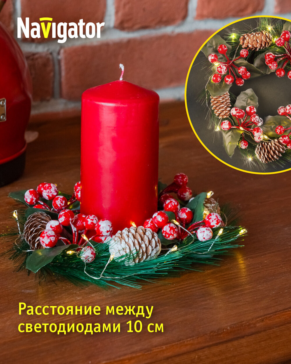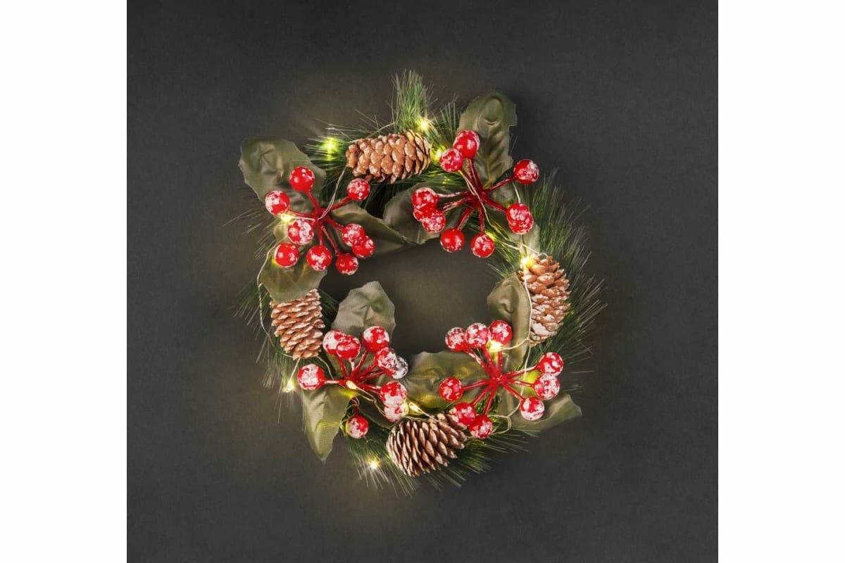 Гирлянда «рождественский венок» на батарейках Navigator 95 035 "Шишки и ягоды" информация: