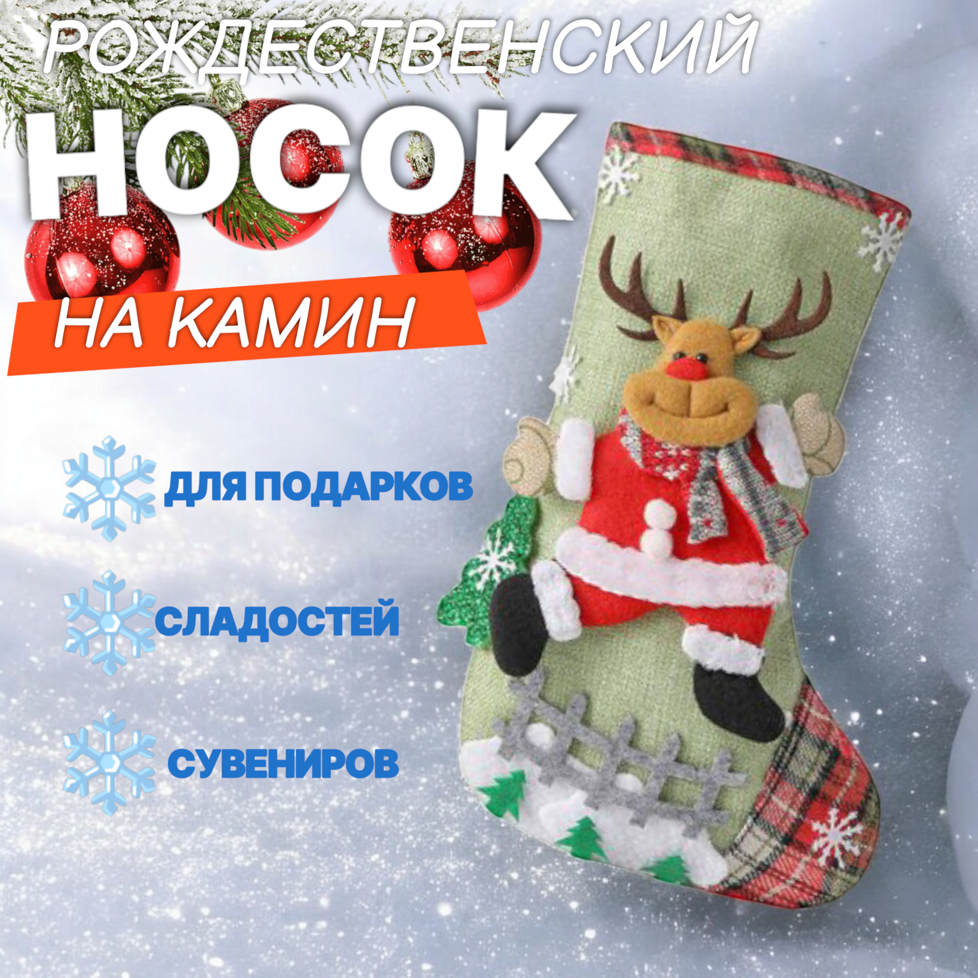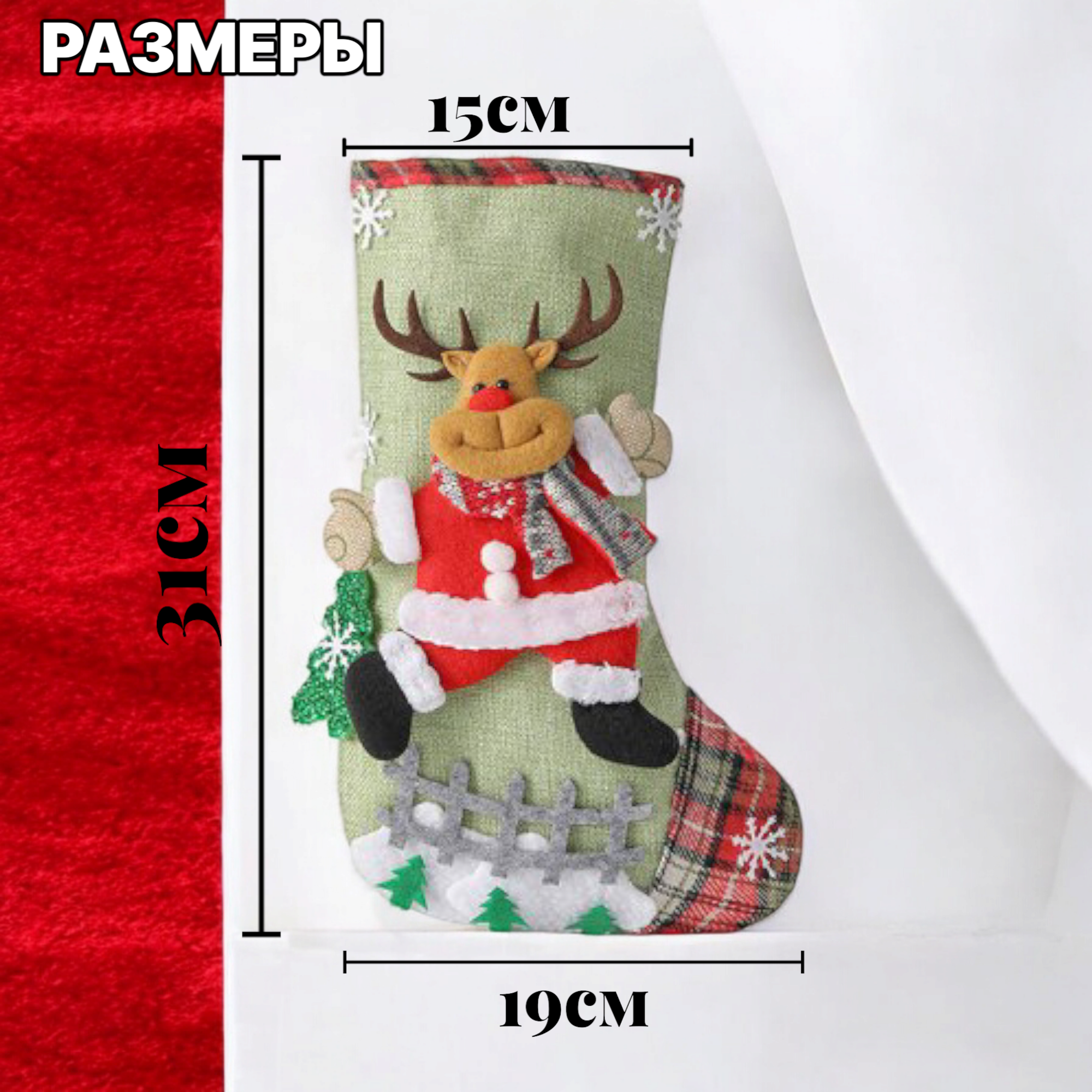 Отзывы на Носок для подарков с изображением "Олень" и рождественским узором для елки, камина и декора, 31см
