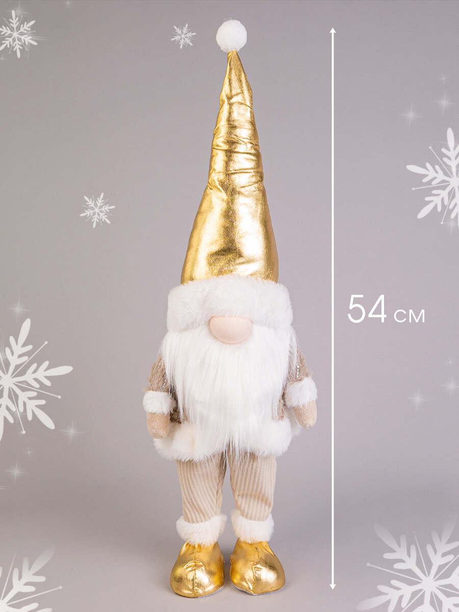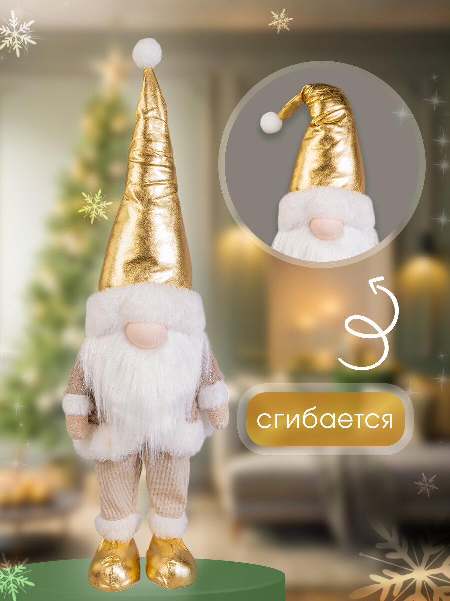 Новогодний Гном под елку с колпаком, золотой, 54 см информация: