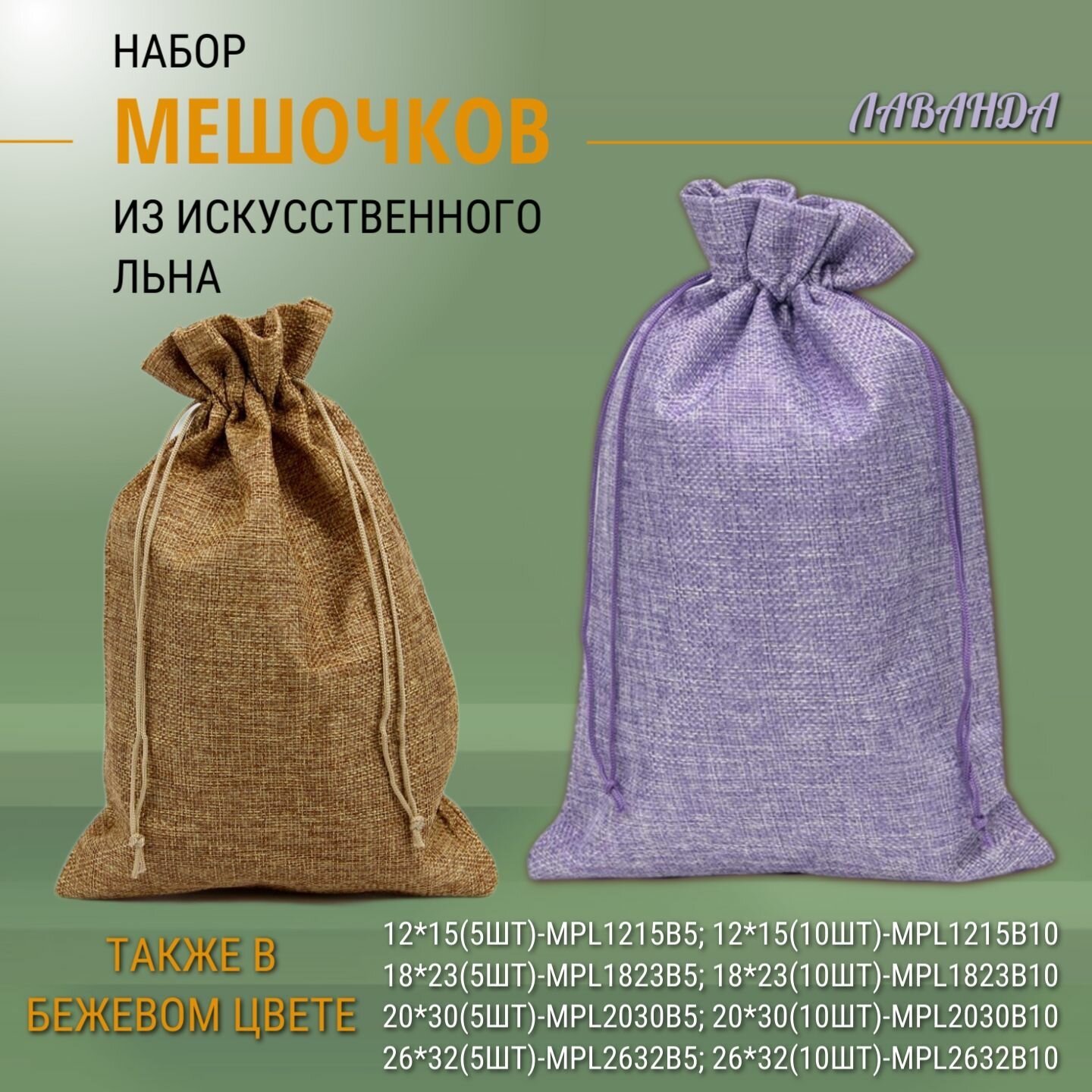 10 цен на Подарочные мешочки льняные (иск.) 20х30 см (10 шт.) / мешочки для хранения - Лаванда