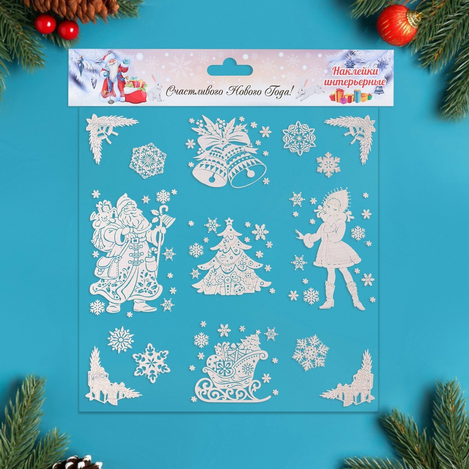 10 цен на Набор наклеек новогодних "Ёлка. Дед Мороз. Снегурочка" 35 х 33 см, 7090158