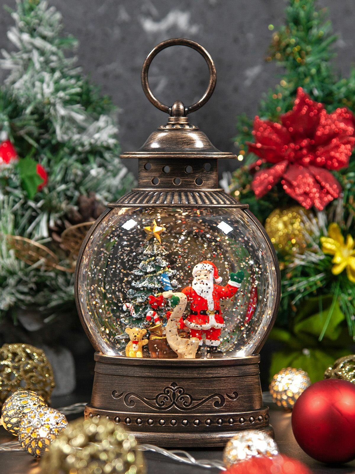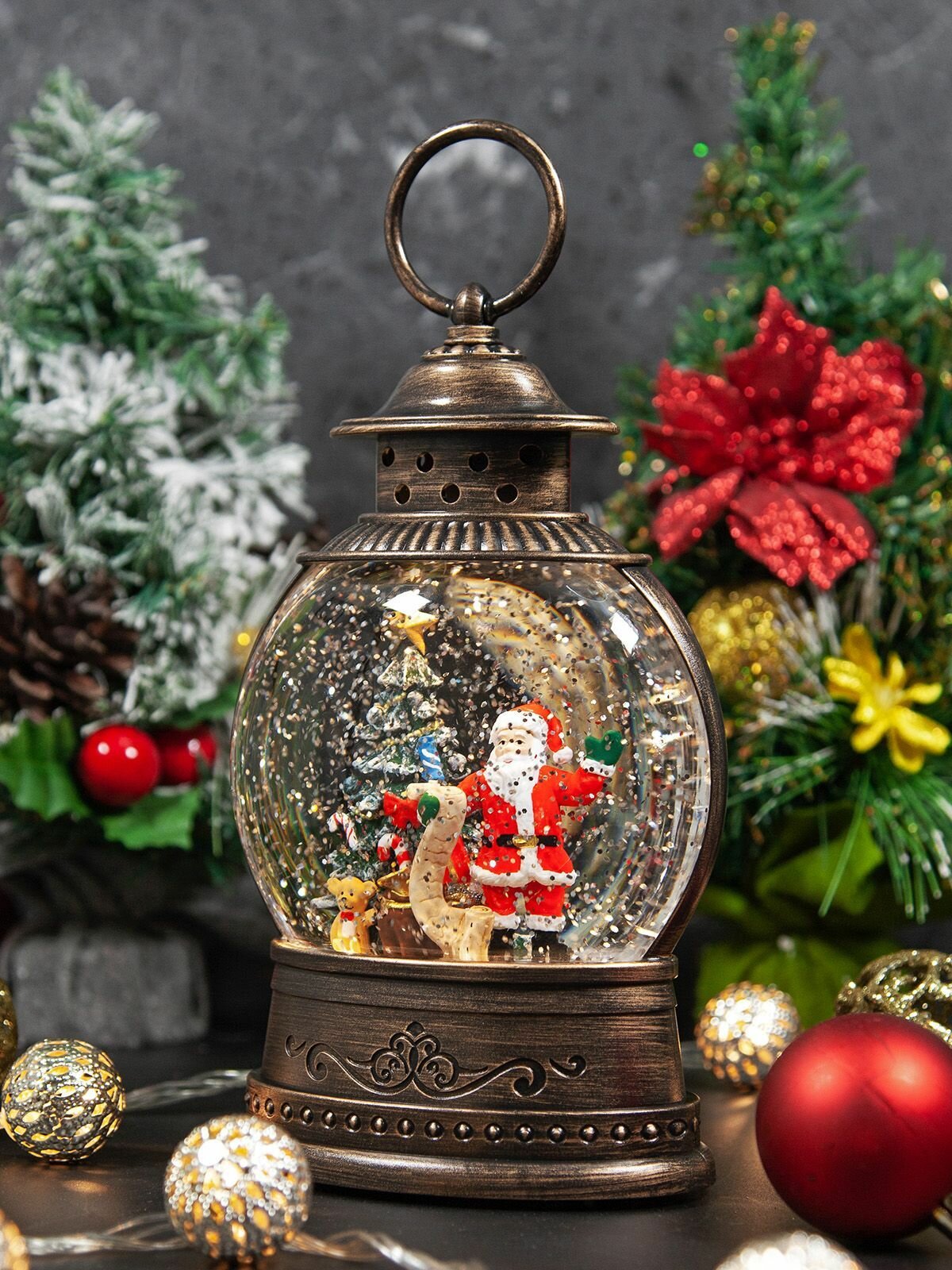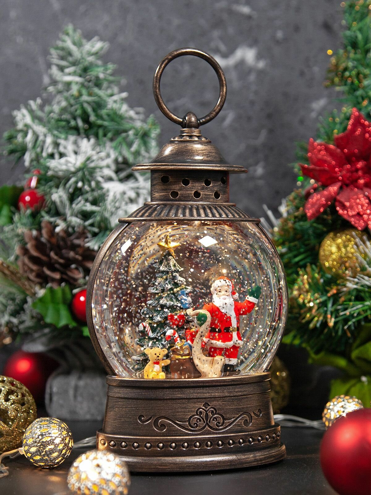 10 цен на Новогодний фонарь и светильник "Новогодние чудеса с Дедом морозом" с метелью и музыкой