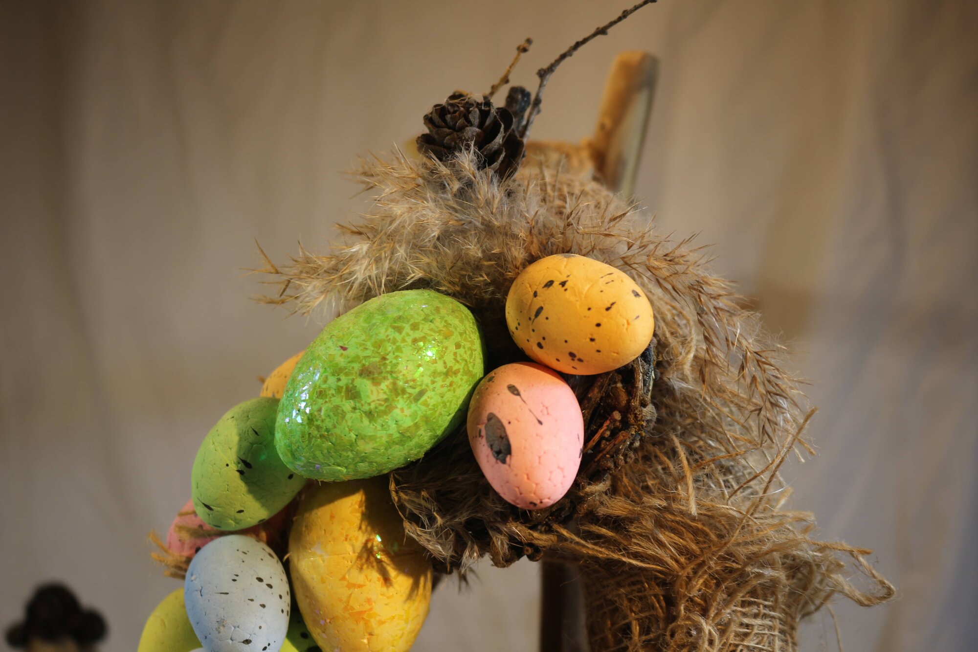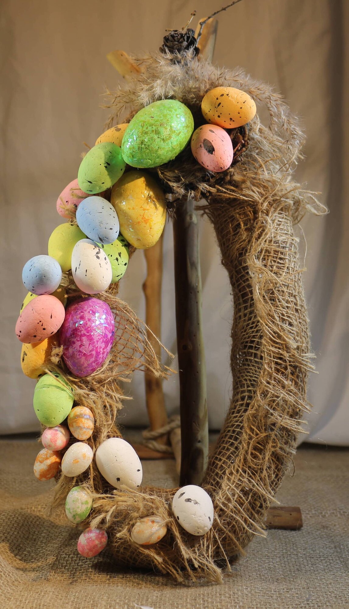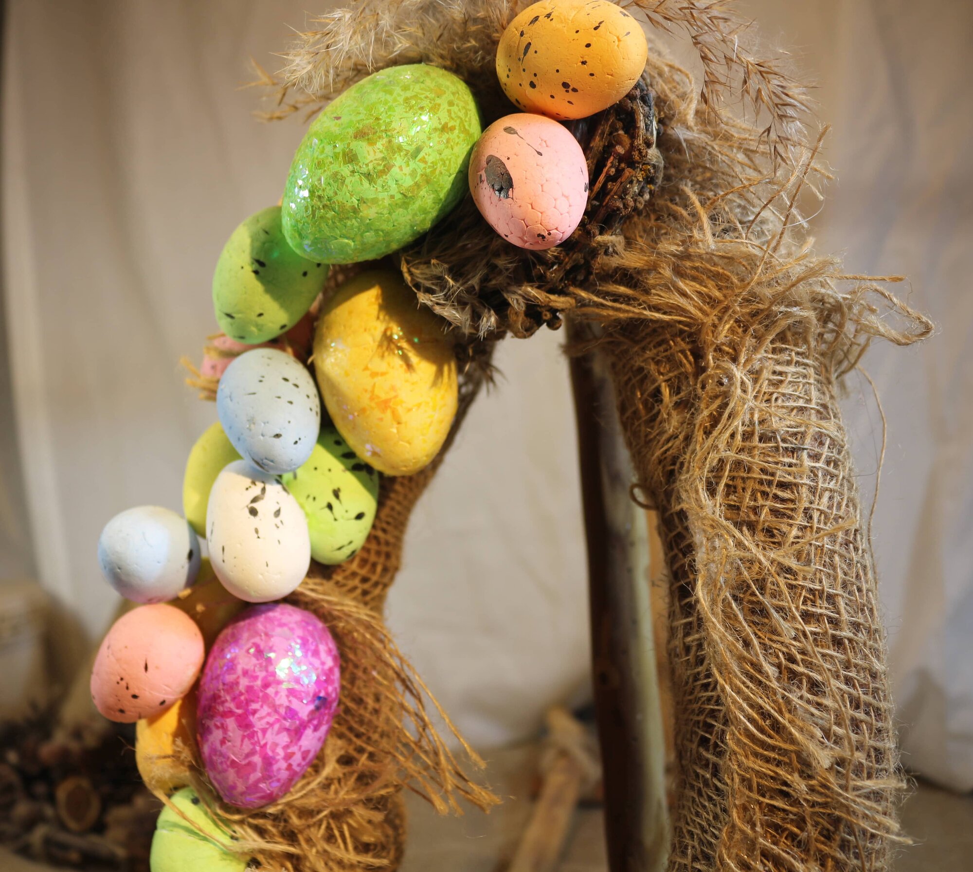 Венок пасхальный "Пасхальные яйца", ручная работа, настенный, информация: